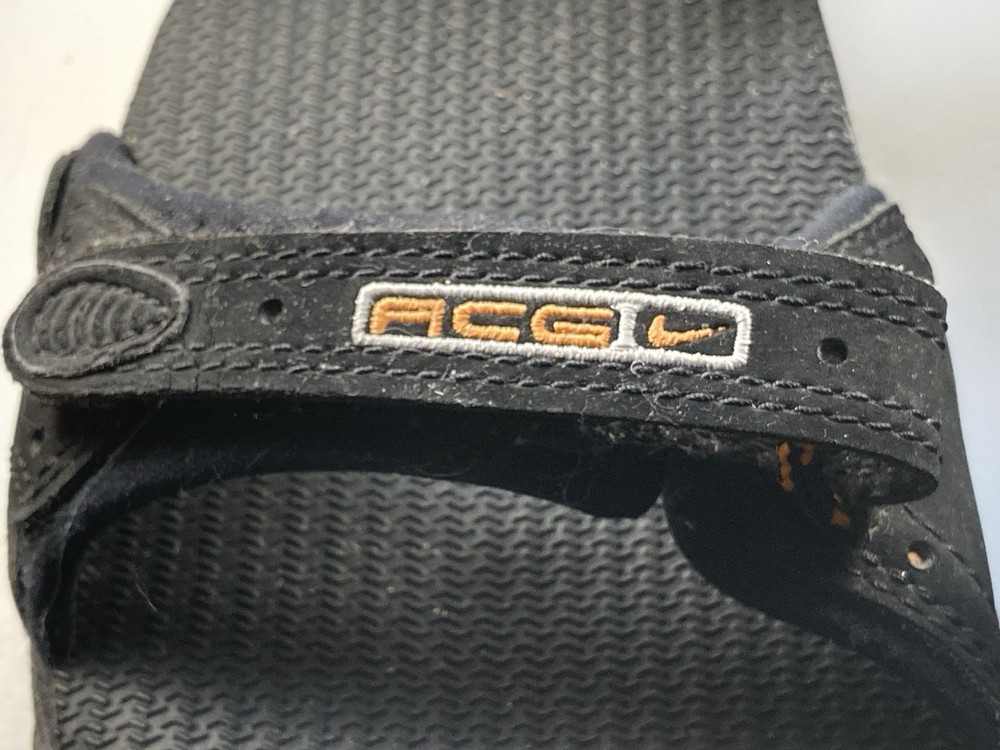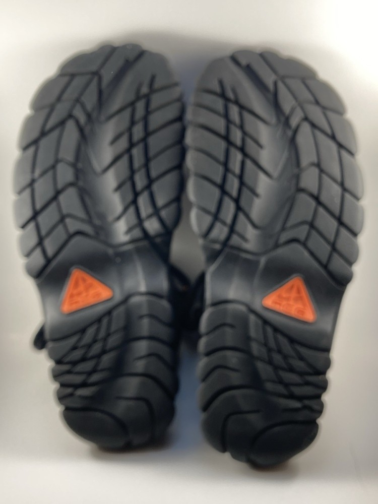 The Nike ACG Men's Size 7 Sandals-Straprunner style-in Black with orange details are a stylish and comfortable option for outdoor activities, travel, or casual wear. These sandals feature a hook & loop closure with adjustable straps, and a rugged rubber outsole for durability. True to Nike brand these sandals are a versatile choice for the summer and spring seasons. Made by Nike ACG, these sandals combine fashion and function.