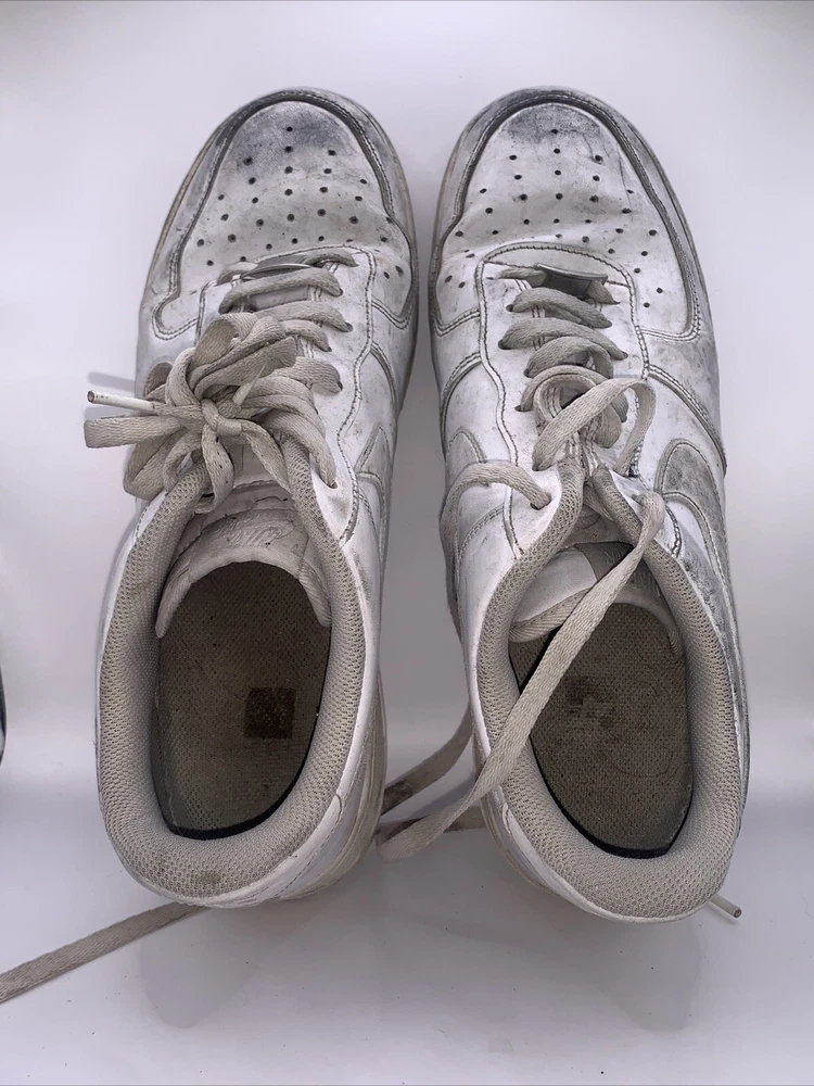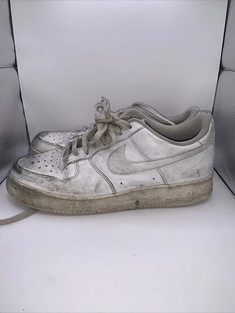 Elevate your sneaker game with these Nike Air Force 1 shoes in a classic white colorway. Featuring a low top shoe shaft style, lace-up closure, and adjustable fit, these sneakers are perfect for both casual wear and outdoor activities. The breathable material and rubber outsole make them suitable for all seasons, whether you're going for a run in the summer or taking a walk in the winter. With a style code of CW2288-111 and a release year of 2021, these Nike Air Force 1 shoes are a must-have for any sneaker enthusiast. They are a standard width and come in US shoe size 12, UK shoe size 11, and EU shoe size 46. The shoes are designed for men and are part of the Nike Air Force product line. Get ready to step up your style with these versatile and comfortable sneakers. Condition can be seen in photos. Has holes in heels on both bottoms. Also has many scuff marks and wear that haven’t been tried to remove.