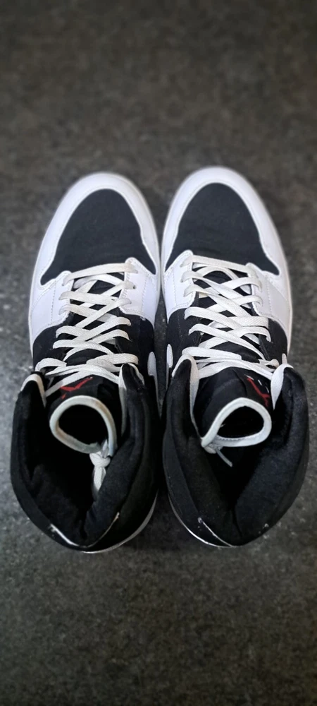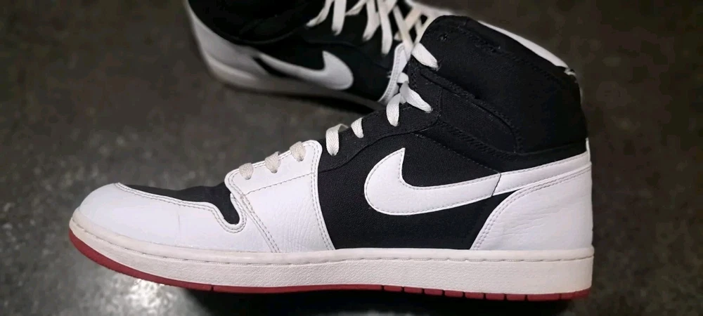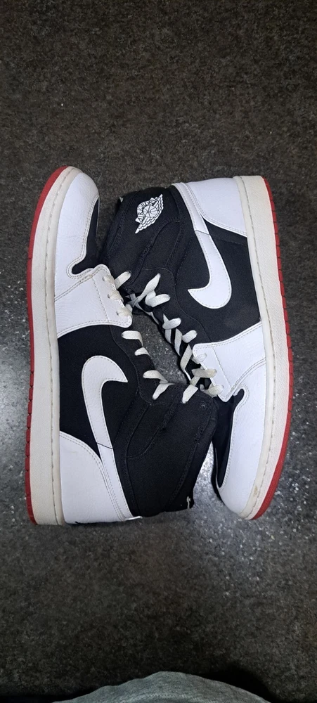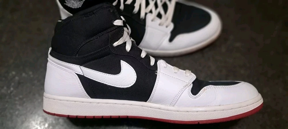 Jordan 1 high strap white black. Back part of strap was cut off. 999999999 sample pair. Very clean for their age only flaw is cut strap. 100% wearable coming from my personal collection.