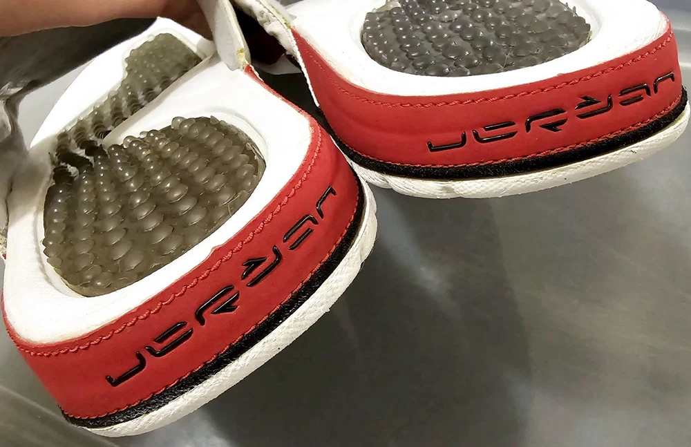 The NIKE AIR JORDAN HYDRO XIII 13 RETRO Men's Slides in White/Red are a highly sought-after and rare pair of sandals featuring the iconic Jordan Jumpman logo. These slip-on slides are perfect for casual or activewear occasions, with a solid pattern and adjustable strap for a comfortable fit. Made with synthetic material and a rubber insole, these retro-themed slides are a stylish addition to any slide collection, combining the classic Air Jordan product line with a modern twist on the slide style.