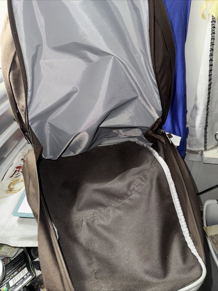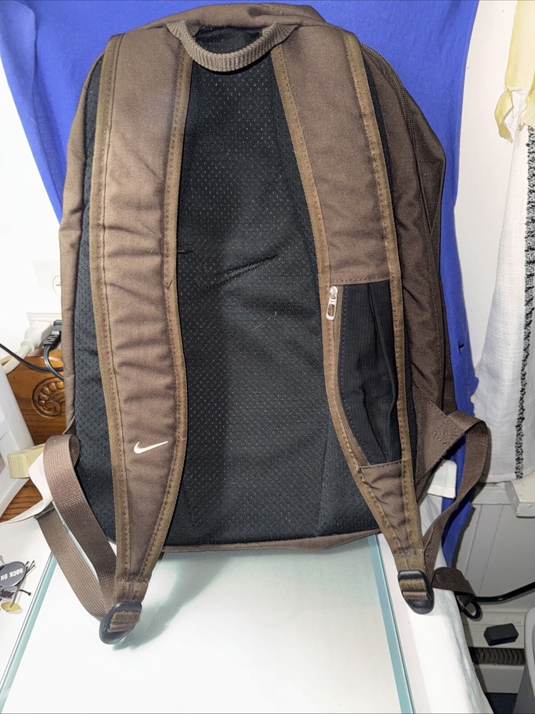 This brown Nike backpack is perfect for school or everyday use. It features a solid pattern and a zip closure for secure storage. The medium size makes it ideal for carrying all your essentials, while the polyester material ensures durability. The backpack has a brown color and a unisex design, suitable for both men and women. The handle and straps are made of polyester, providing a comfortable grip. Whether you're going to class or running errands, this backpack is a stylish and practical choice.