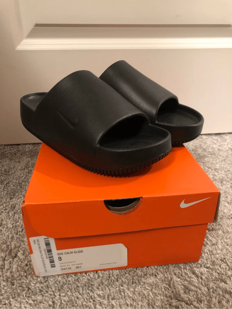 Nike Calm Slide Men's Size 8/ Women's Size 9 Black New in box Color Black Men’s size 8 / Women’s size 9 Unworn