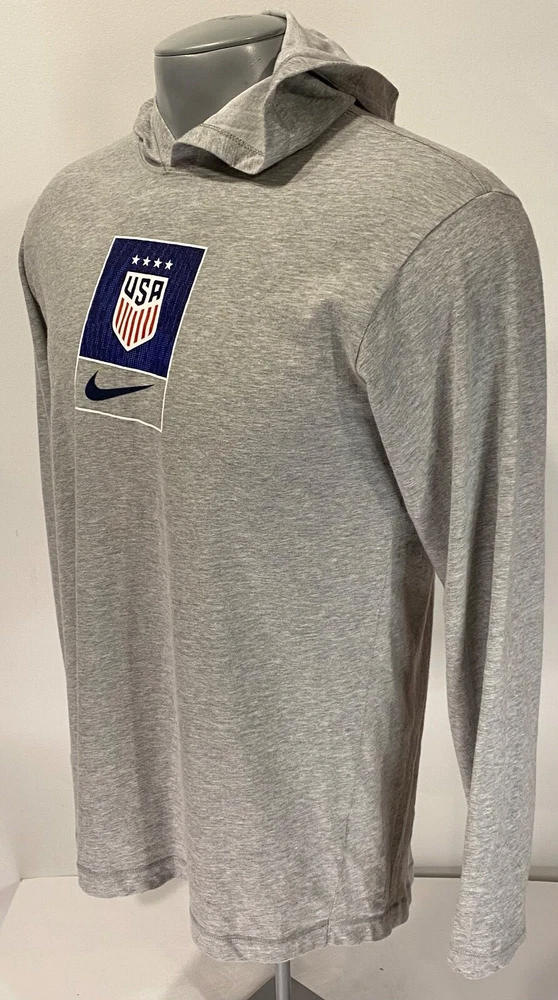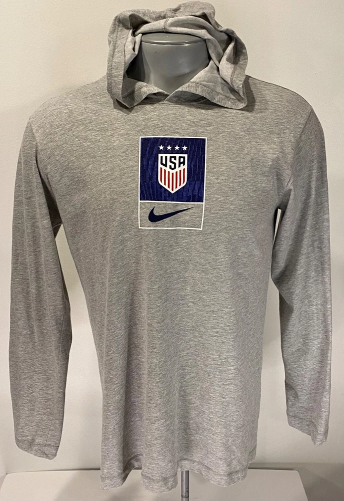 NIKE SMALL LONG SLEEVE HOODIE T-SHIRT TEE GRAY USA SOCCER ACTUAL MEASUREMENTS: 20 INCH CHEST (PIT TO PIT) 30 INCH LENGTH (TOP OF SHOULDER TO HEM) 24 1/2 INCH SLEEVES (SHOULDER SEAM TO END) 100% GENUINE AND AUTHENTIC *************************************************************** *We specialize in providing our Customers with High End, Brand Name Designer Clothing at an Affordable Cost....regardless of whether it's brand new or pre-owned. Our goal is for customer satisfaction!! If you have any questions or concerns feel free to reach out and contact us! P31 All Pre-Owned Clothing is Properly Cleaned & Laundered as per ebay policy standard
