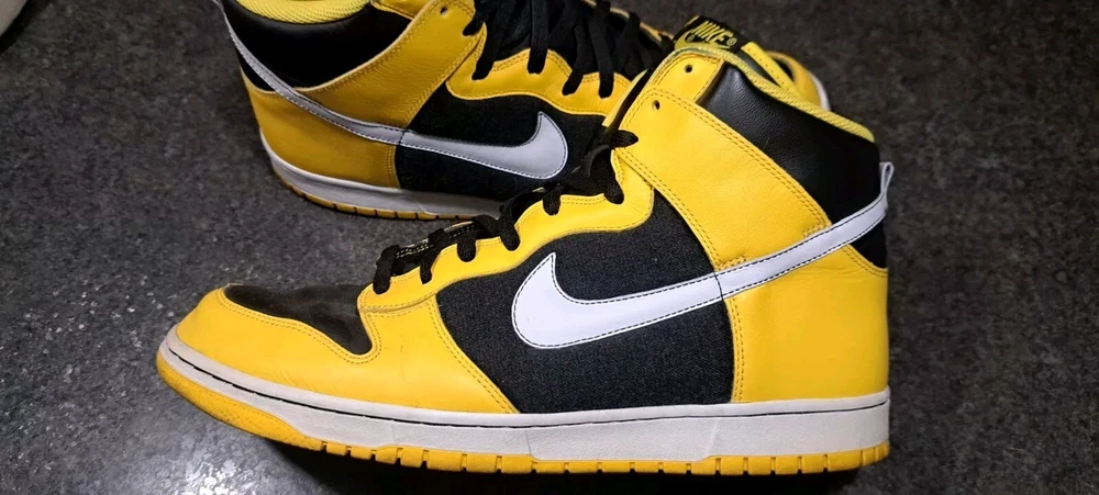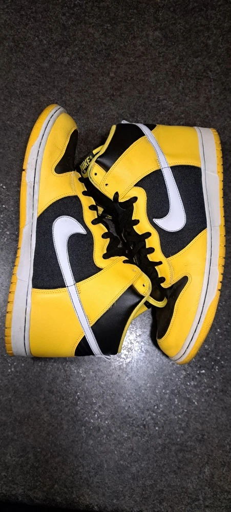 Dunk high yellow black from 2008 extreamly rare especially in this size. Pairs on goat are over $300, and there isn't a single 14 anywhere. Still wearable coming from my personal collection.