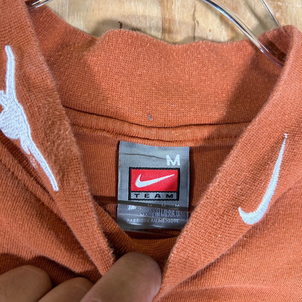 Elevate your everyday style with the Nike Team Sports Long Sleeve Tee, tailored for a regular fit in men's size medium. Crafted from breathable cotton knit fabric, this brown pullover is designed to comfort and support during a variety of activities, including walking, cross-training, and gym sessions. The mock neck silhouette ensures a snug fit, perfect for keeping warm during the chillier months of fall and winter. Details like the embroidered Nike logo add a touch of athleticism to the piece, making it ideal for activewear, casual outings, or even a casual work environment. Its stretch fabric and long sleeves offer flexibility and coverage, while the machine washable garment care ensures easy maintenance. Whether you're hitting the pavement or the weights, this versatile Nike tee is ready to go right along with you. SKK: AM-50-04