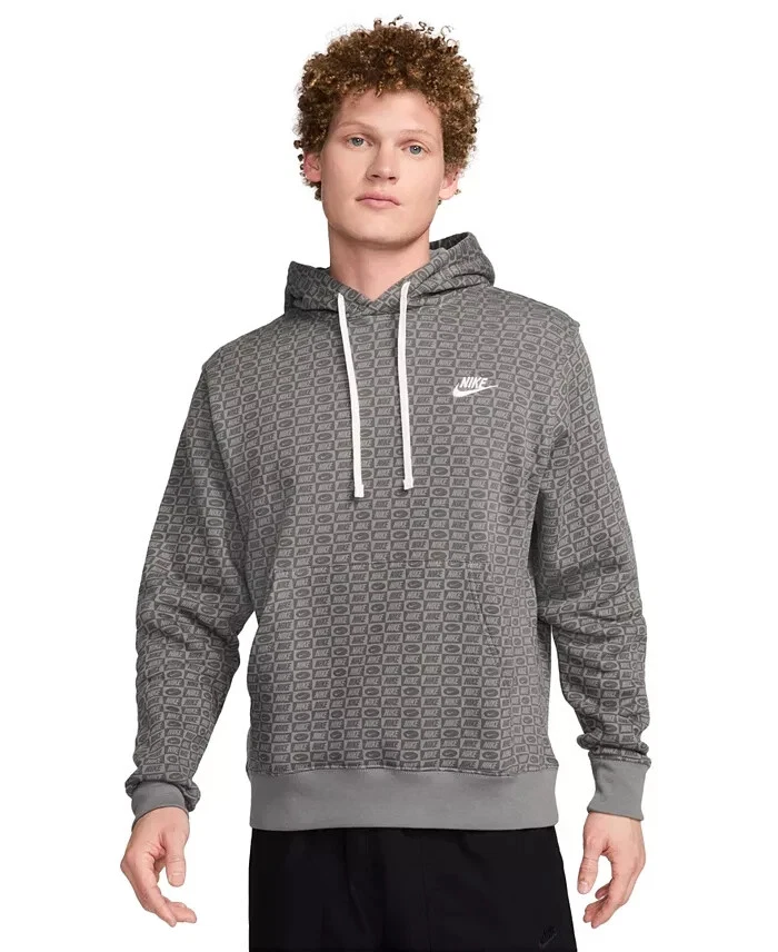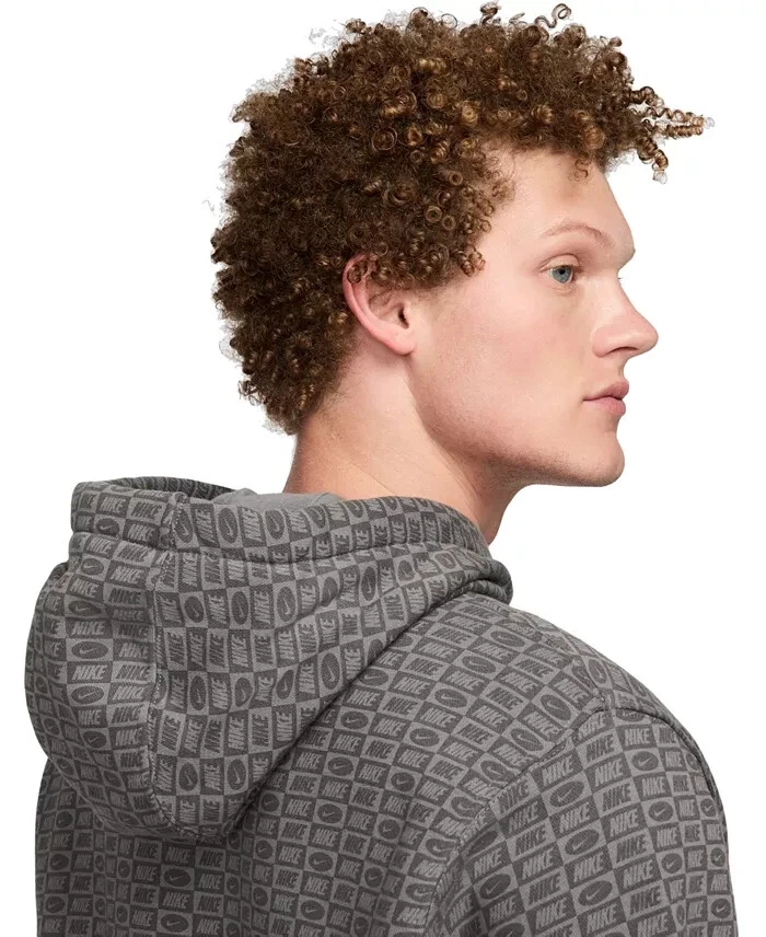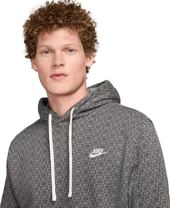 To help elevate your hoodie game with some signature style, Nike gave one of their most comfortable basics a statement-making allover print. Imported Kangaroo pocket Allover print Drawstring hood Long sleeves with ribbed cuffs Logo at left chest