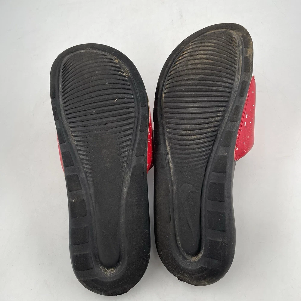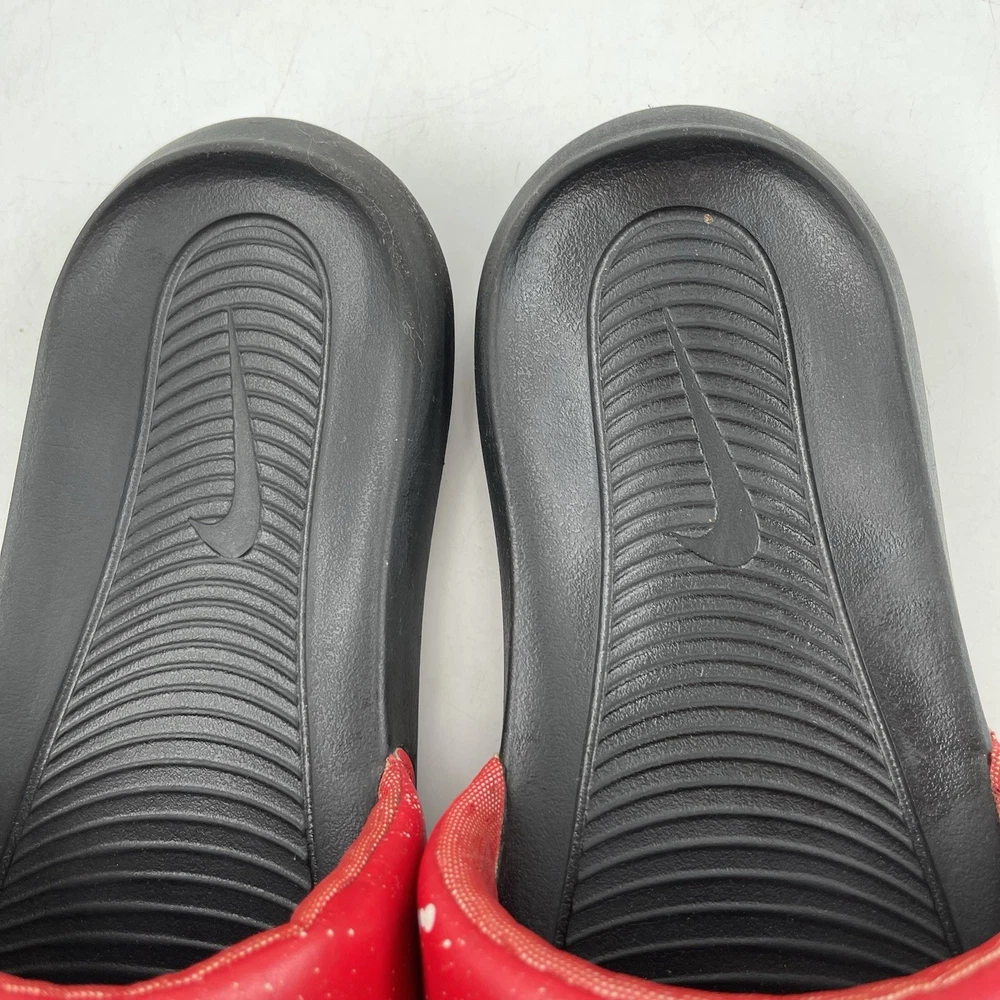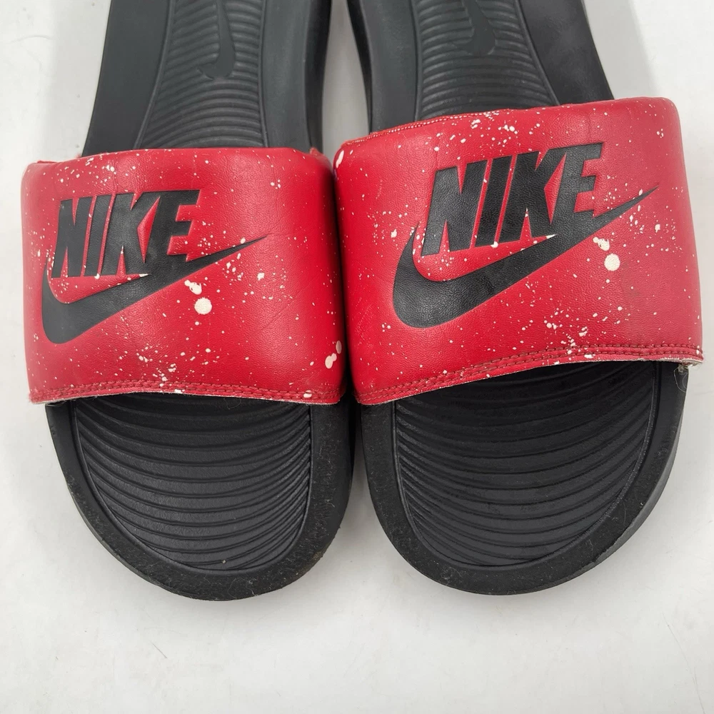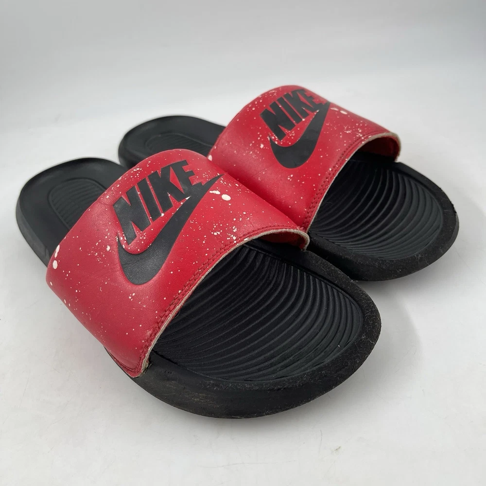 Very Good Preowned Condition Men’s Size 9 Nike Men’s Victori One - Size 9 - Red Splatter Print Slide Shoe Please see photos for details as they are part of the description Condition: Very Good. Normal signs of use. Gently worn, no stains, no holes or tears. See photos for details. Legendary Comfort, Remastered From the beach to the streets, the Nike Victori One perfects a classic, must-have design. Delivering lightweight comfort that’s easy to wear, it features new, softer foam that feels comfortable while the contoured footbed with grip pattern helps cradle and holds your foot in place. The wide, padded strap feels as good as it looks. •The new, softer foam and mechanical cushioning adds unbelievable comfort that lasts. •The contoured footbed cradles and supports your foot while its grip pattern helps keep your foot in place •the rolled top edge of the strap adds to the comfort while the thick padding feels soft •The wider strap adds additional space, accommodating more foot sizes •The tooling features a new pattern, for added traction •Bold “Nike” and SWOOSH on the straps lets you represent your brand •CN9678-006 Gently used. No original box. Carefully packaged and shipped same/next business day Please feel free to ask questions All items come from a smoke-free/pet friendly environment Please make sure to follow me. I list new inventory daily SH4441/01PE-R08