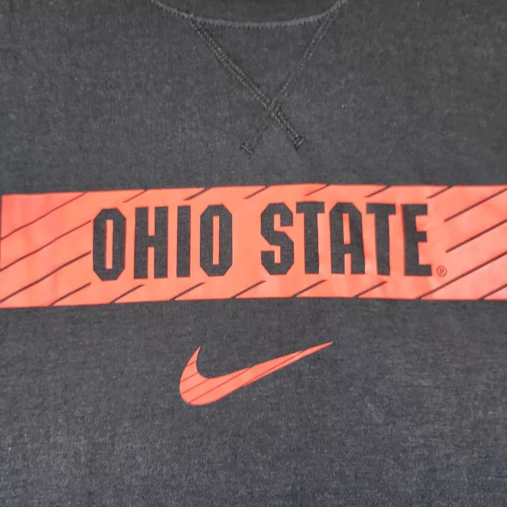 Nike Ohio State Buckeyes athletic t-shirt in excellent condition. Features Dri-FIT moisture-wicking technology, red stripe detail on sleeves, and Ohio State graphic print on front. Gray base with red accents. Perfect for athletic wear. Color: Gray Department: Men Type: T-Shirt Style: Basic Performance/Activity: Training, Weightlifting, Running & Jogging, School, Football Features: Moisture Wicking, Quick Dry, Breathable, Dri-FIT Technology, Athletic Performance Sleeve Length: Short Sleeve Closure: Pullover Fabric Type: Jersey Neckline: Crew Neck Keywords: ohio state, buckeyes, nike, dri fit, performance, athletic wear, college, sports, workout, training, moisture wicking, gym shirt all items have been cleaned and disinfected we stand behind all items we sell so please contact us if you have an issue with any order
