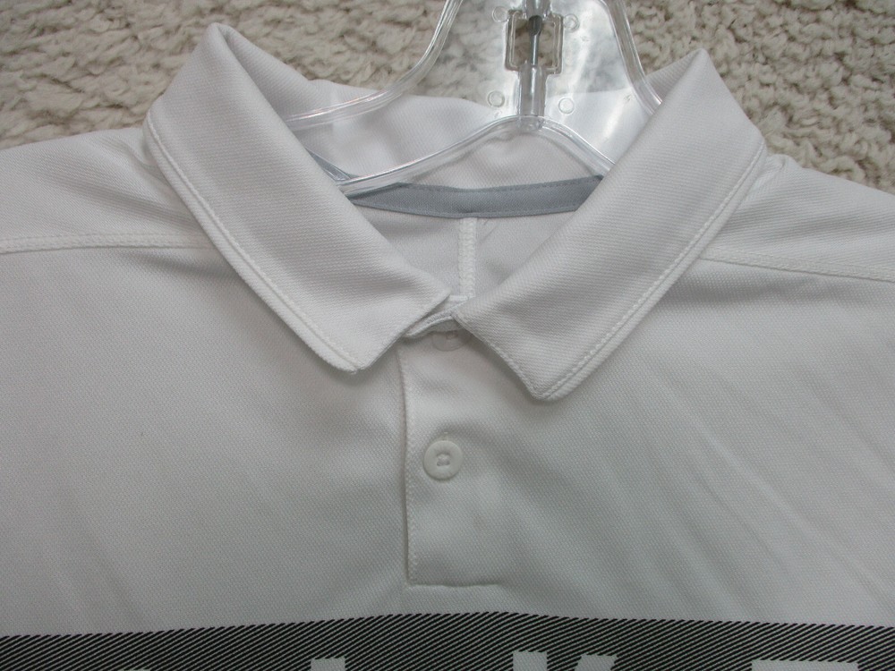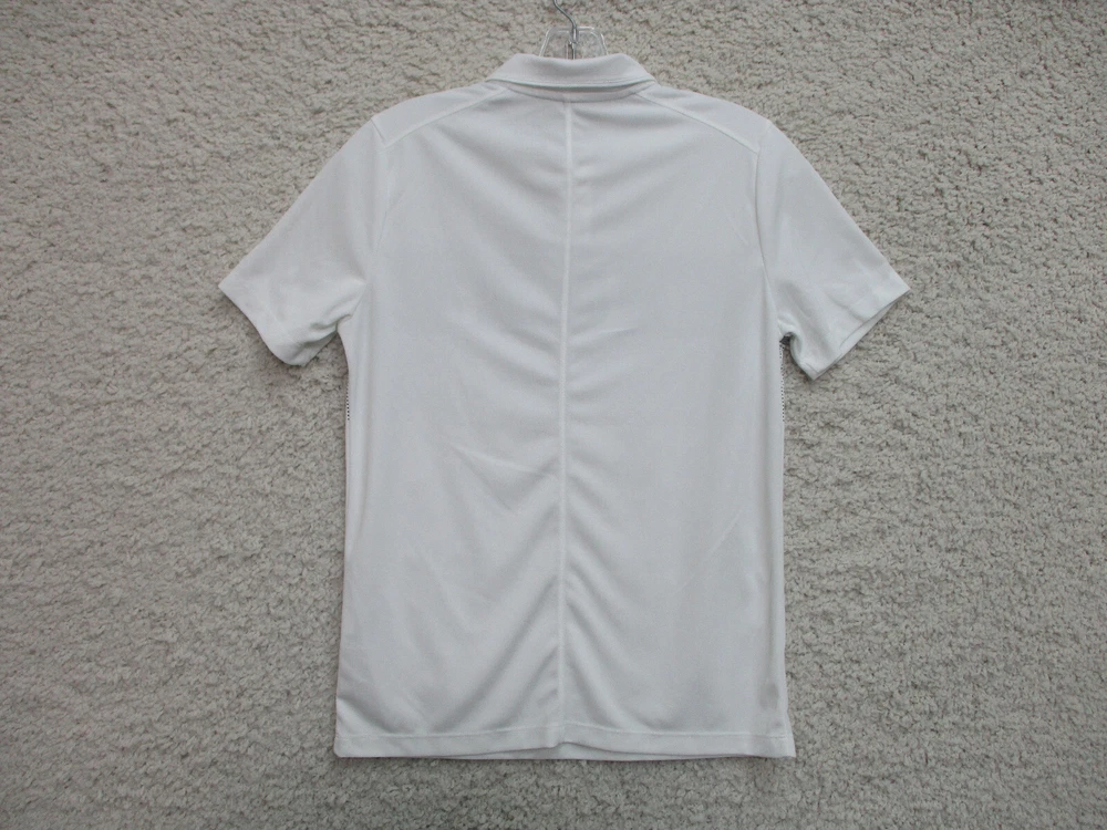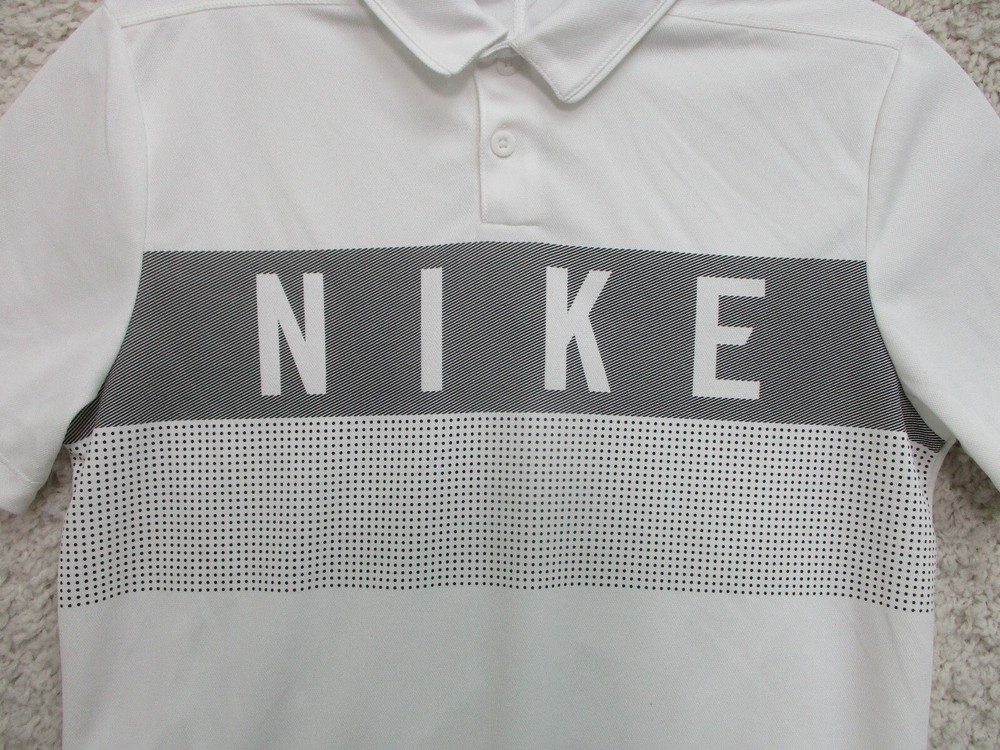 Neckline: Collared Department: Women Occasion: Casual Country/Region of Manufacture: China Features: All Seasons, Easy Care, Stretch, Lightweight Seller Notes: “Very Good Used Condition. Please, See Pictures for Full Condition and Measurements.” Theme: Logo, Modern, USA Season: Fall, Spring, Summer, Winter Material: Polyester Blend Size: L Pattern: Solid Sleeve Type: Casual Sleeve Sleeve Length: Short Sleeve Type: Polo Fit: Regular Accents: Logo Size Type: Regular Vintage: No Style: Basic Closure: Button Brand: Nike Color: White