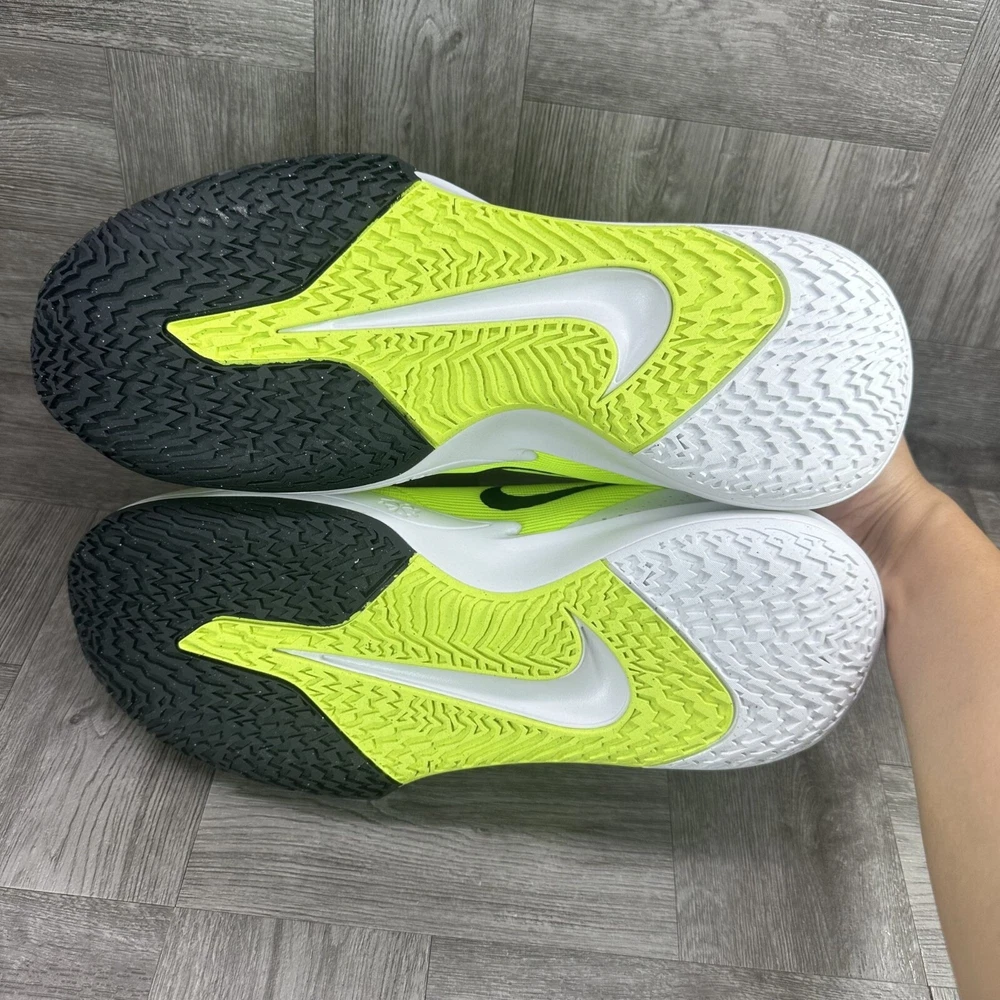 Elevate your game with the Nike Precision 7 Men's Running Shoes, size US 12, style code FN4322-700. Designed for the basketball enthusiast, these sneakers feature a vibrant green and volt summit colorway that stands out on and off the court. The mesh upper material offers breathability while the foam insole ensures comfort during high-intensity play. With a versatile appearance that transitions smoothly from activewear to casual workwear, these low-top athletic shoes are a practical addition to any wardrobe. The standard shoe width accommodates a variety of foot shapes, and the durable design crafted in Vietnam promises lasting performance across all seasons.