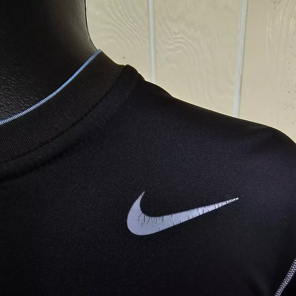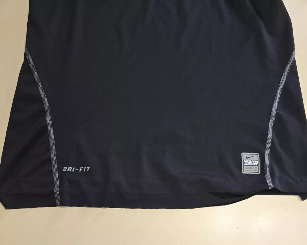 An Incredible one time opportunity to own this Nike Pro Combat DRI-FIT Fitted Black Performance Sportswear Shirt Top Sz S *NOTE***See last photos for incomplete hem loose on bottom and sleeve, logo cracks, snags front & back, collar discoloration ***PIT TO PIT IS 18" **AS IS **No returns accepted ***VIEW ALL MEASUREMENT PHOTOS FOR PROPER FIT**** Explore the in depth photos showing every angle possible as if you have it in your hands. Thank you from all of us at DPACTIVEXPRESS ***Note 1: Display stands not included with all items unless specifically stated in the title. ****Note 2: DPACTIVEXPRESS carries a diverse collection of brands in this category, so we take a pit to pit measurement photo. ~~~~~~~ITEM IN LISTING PHOTOS IS THE ITEM YOU WILL RECEIVE~~~~~