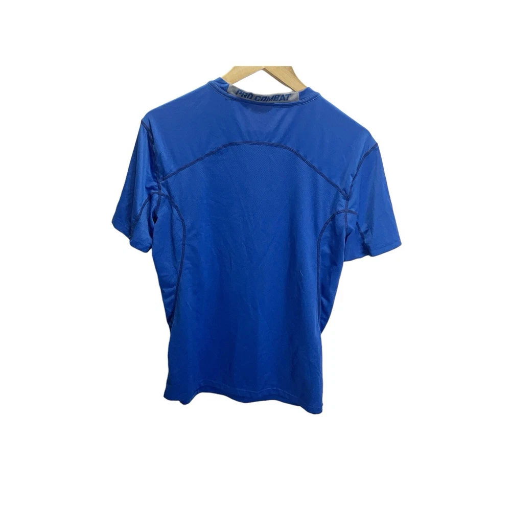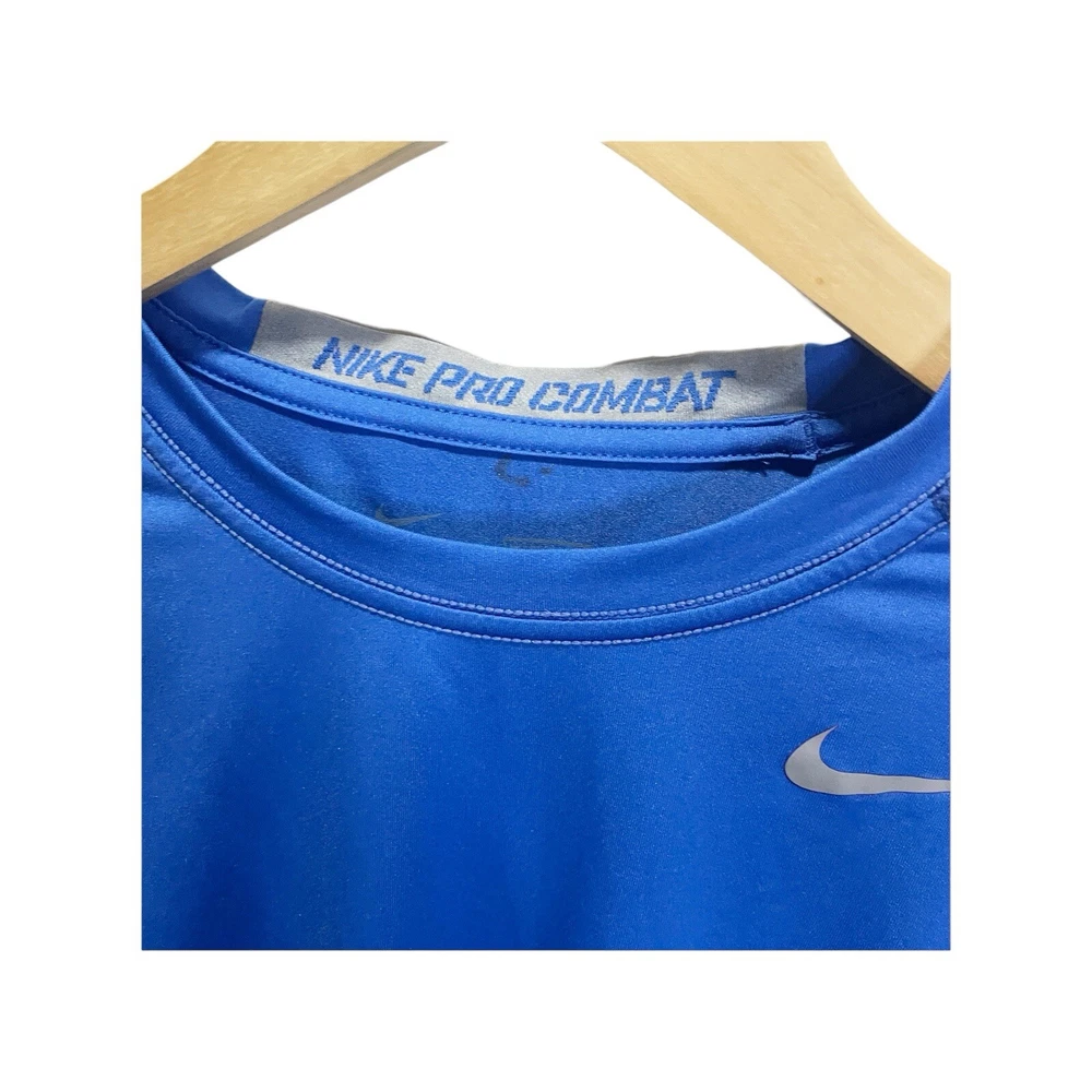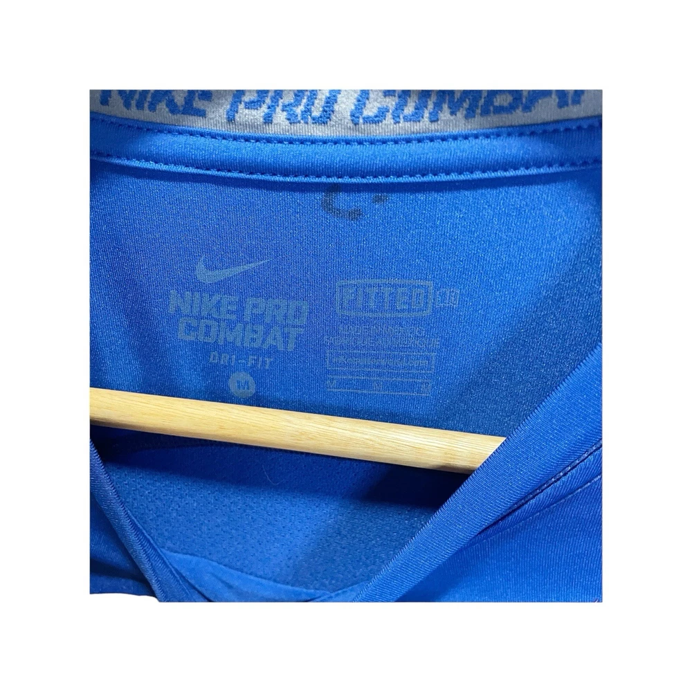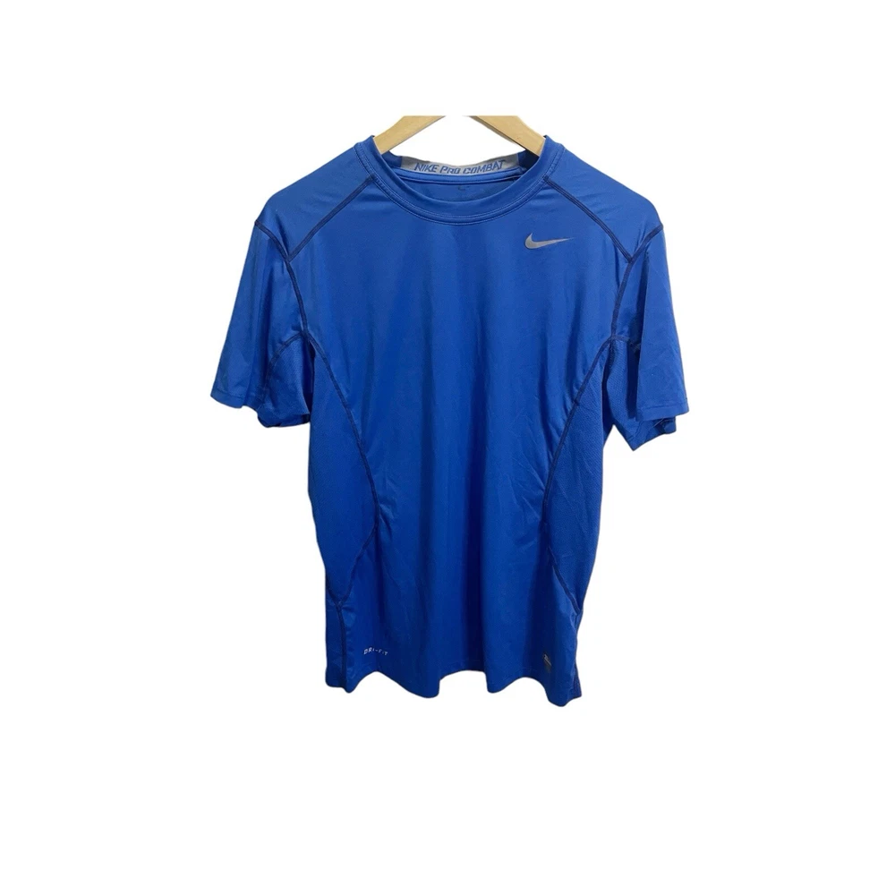 This Nike Pro Combat Dri-Fit workout shirt is perfect for any active man. The shirt is made of lightweight and breathable fabric that is easy to care for and quick-drying. Its short sleeves and fitted design provide excellent support and flexibility during any workout. The shirt is offered in a beautiful blue color and is available in size M. It is a regular fit and is suitable for casual occasions. The Nike Dri-Fit technology ensures that you stay dry and comfortable even during intense workouts. This shirt is a must-have for any man who wants to look and feel great while staying active. in good. condition length 27" chest width 19" All Measurements Are Approximate Please email us with any questions! ** LIKE THE ITEM BUT NOT THE PRICE, REASONABLE OFFERS ACCEPTED We stand by our clothing items and strive to make every purchase perfect, please reach out if you have an issue with an order before leaving negative feedback Every Purchase Gets Us closer to our dream of a brick and mortar store!!!