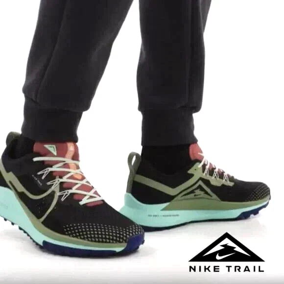NIB * Nike React Pegasus Trail 4 Men's Trail Running Shoe MSRP: $140 Brand New in Box ENERGY ON THE ROAD AND THE MOUNTAIN TRAIL. Running is your daily ritual, taking you from the road to the forest trails to find new adventures and goals. The Nike Pegasus Trail 4 shoe takes you wherever you want to go with great support and flexibility. The outsole will hold you up on rocky terrain, but it will also offer a comfortable feel on the road. The support in the middle section is controlled by laces that allow you to adjust the shoe exactly as you need it. It's time to hit the ground running, meeting new adventures in this winged classic. Lightweight but durable Data gathered from runners helped Nike make and place special mesh across the upper that's incredibly lightweight, breathable and durable. They have placed extra layers on the toe to increase durability. Support for your steps Flywire technology is connected to the midfoot strap and provides the perfect amount of support so your foot stays in place. Energy-packed movement Nike React technology uses lightweight, durable foam that flexes beautifully with every step. Grip that holds you up The rubber outsole has a special pattern that was developed based on data from runners and walkers like you. This ensures grip in key areas, helping you stay on your feet and maintain stability on rocky trails, while ensuring comfort on the road. Thoughtful abrasion resistance Rubber outsole extends to the toe box for added durability and protection. Style: DJ6158-004 Color: Black/Alligator-Canyon Rust Brand New in Box Thanks for looking! Check out my other items for more great deals!