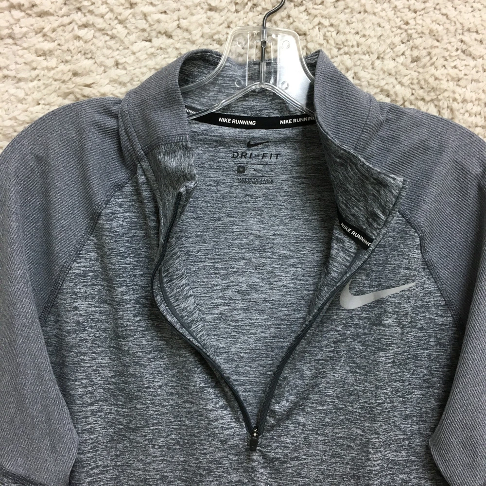Nike Running Shirt Medium Adult Gray Dri Fit 1/4 Zip Pullover Athletic Mens M
