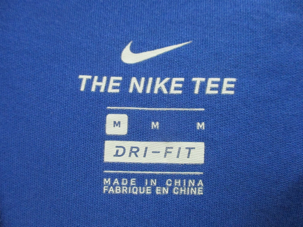Size Type: Regular Season: Fall, Spring, Summer, Winter Country/Region of Manufacture: Mexico Product Line: Nike Dri-FIT Pattern: Solid Type: T-Shirt Brand: Nike Department: Men Color: Blue Features: All Seasons, Easy Care, Stretch Neckline: Crew Neck Accents: Logo Theme: Flag, Logo, Sports Sleeve Length: Short Sleeve Material: Cotton Blend Fit: Regular Size: M Seller Notes: “Very Good Used Condition. Please, See Pictures for Full Condition and Measurements.”