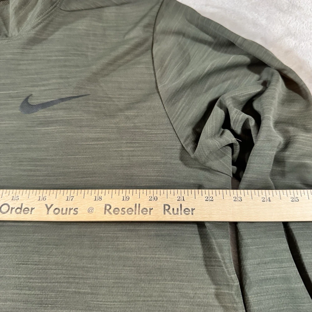 Crafted for the active man, the Nike Shirt in a striking green hue is a versatile addition to any wardrobe. The men's large pullover features a comfortable mock neck with a convenient 1/4 zipper, ideal for easy temperature regulation and a customizable look. Its long sleeves and moisture-wicking fabric make it perfect for running, jogging, or any workout, ensuring you stay dry and comfortable. The shirt boasts a solid pattern and a sleek Nike Swoosh logo accent, combining style with functionality. Designed with 100% polyester, this piece is machine washable for easy care and is suitable for all seasons. Whether you're hitting the gym or enjoying a casual day out, this Nike Dri-FIT top is tailored for both performance and everyday wear.