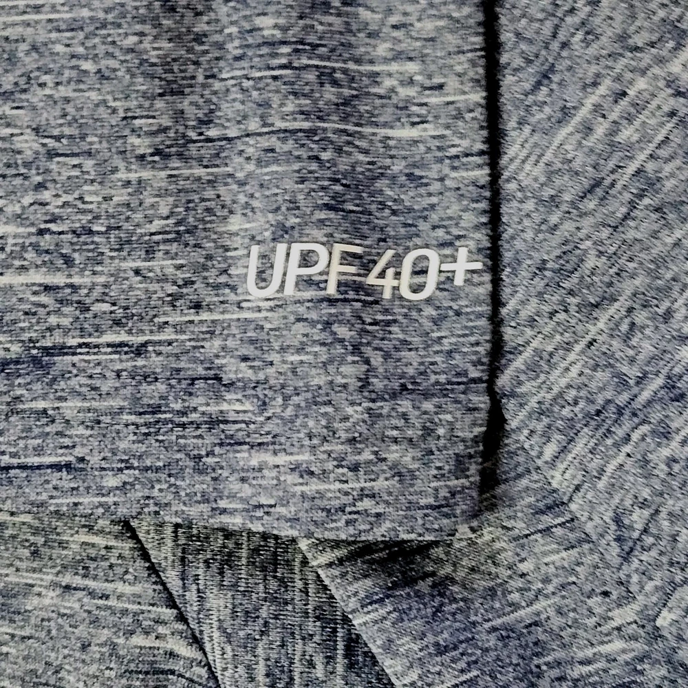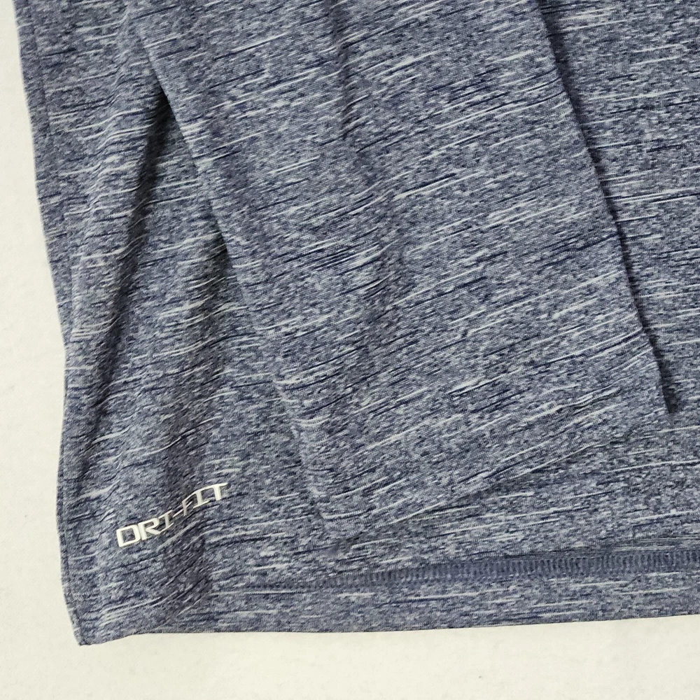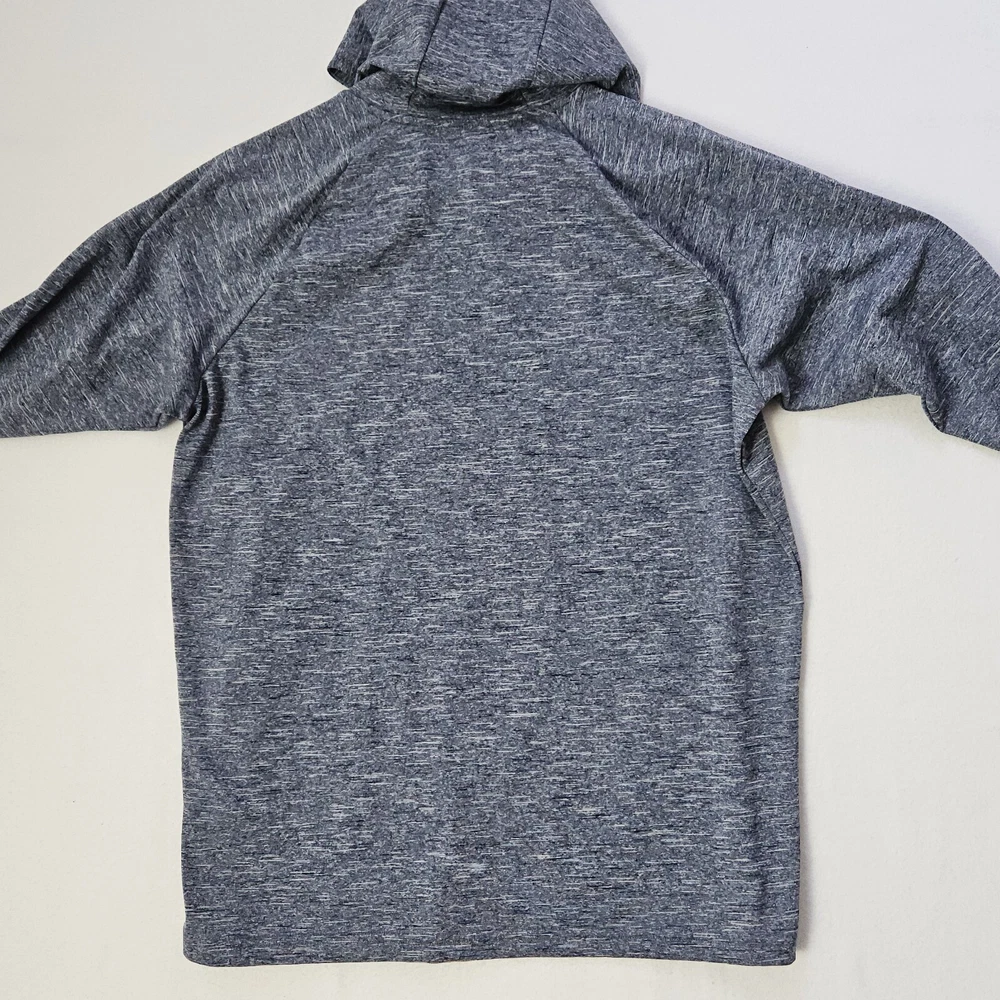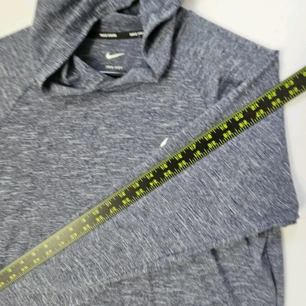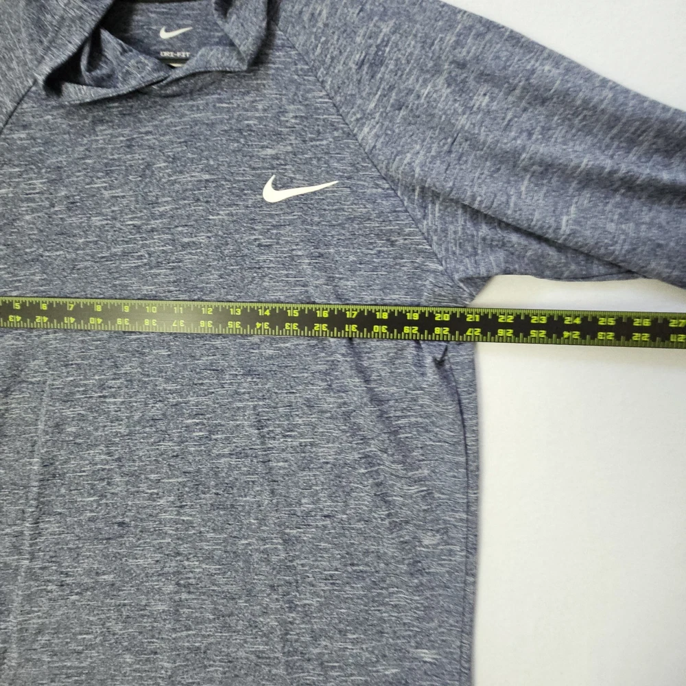 Nike Swim dri fit blue and white mix with hoodie long sleeve. Shirt is in excellent clean condition no holes or tears. Sz Medium measures flat 19" across shoulders 21" pit to pit 28" Length 23" sleeves