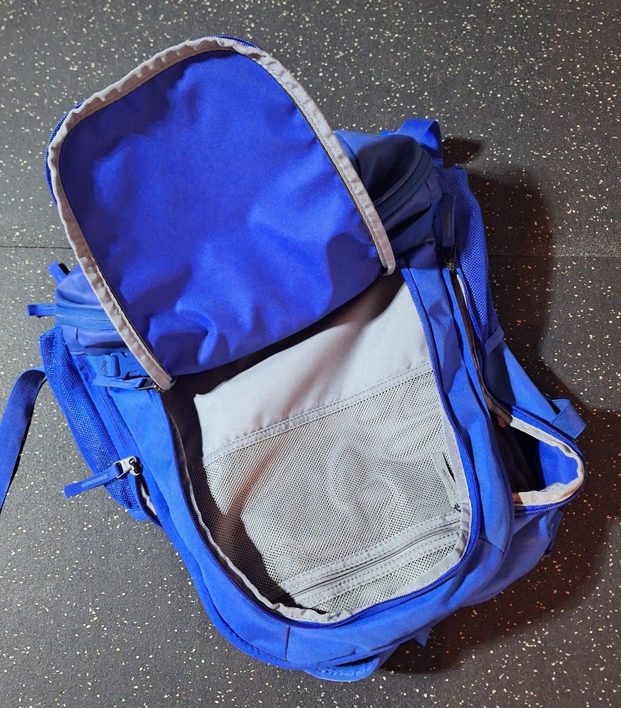 Blue Nike Backpack Vapor Select I'm good used condition. Comes clean! There is some writing on the back. Please see pictures. Great for baseball, softball, or sports. The Nike Multi-Pocket Zipper Vapor Select Baseball Backpack is a versatile and durable backpack designed for baseball players. Made of polyester material, this blue backpack features multiple pockets for storing various items such as bats, gloves, and cleats. The zipper closure ensures that everything stays securely in place during transportation. Suitable for both male and female players, this Nike Vapor Select backpack combines style and functionality for any baseball player on the go.