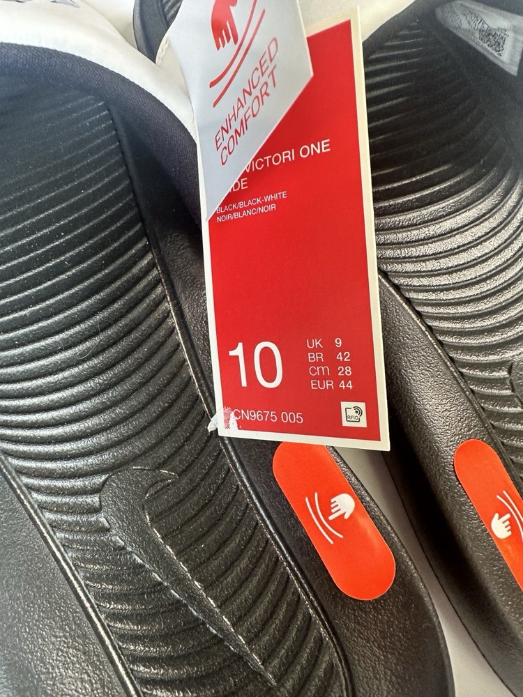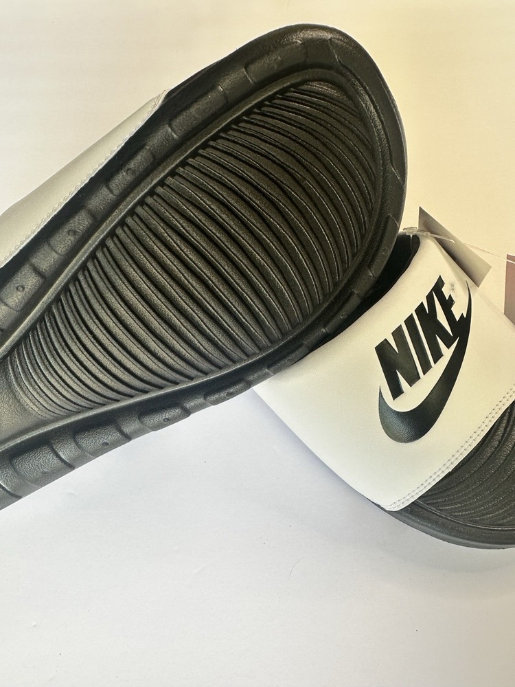 The Nike Victori One Men's Slides in White/White, Size 10 are a stylish and comfortable choice for men. Featuring a solid white color with a canvas lining, these slides are perfect for casual wear. The rubber outsole provides durability and traction, making them ideal for everyday use. The Nike Air product line ensures high quality and a fashionable design, making these slides a versatile addition to any man's shoe collection.