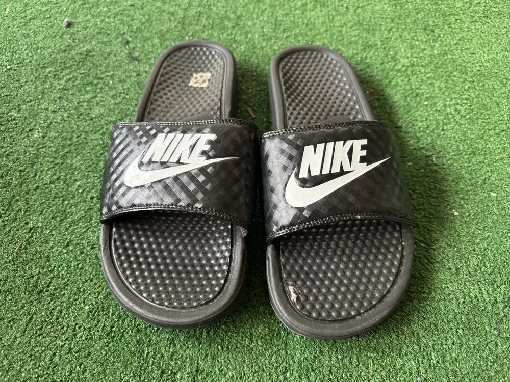 Nike Women's Benassi Just Do It JDI Slip On Slides Sandal Black White Sz 11. Free shipping from a smoke free home. Used a handful of times.