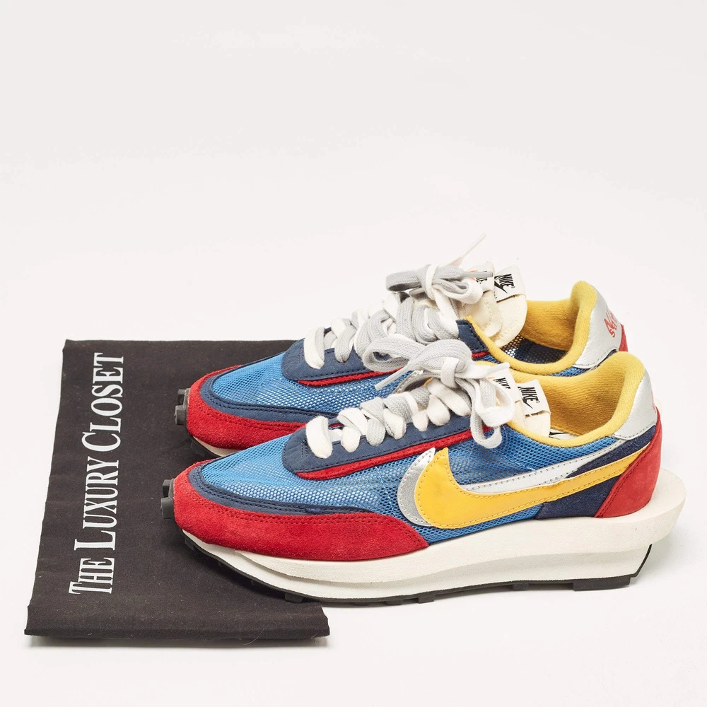 Our eBay Store About Us Contact Us Add to Favorite Sellers Nike x Sacai Multicolor Leather and Suede LD Waffle Varsity Blue Sneakers Size Sporting a dynamic multicolor design, these Nike x Sacai LD Waffle sneakers combine leather and suede for a bold and functional take. Perfect for adding an athletic yet stylish touch to your wardrobe. Product Details Brand Nike x Sacai Color Multicolor Includes The Luxury Closet Packaging Outsole Length 27.5 cm Outsole Width 10 cm Size US 5.5 (EU 38/UK 5) Certified by The Luxury Closet This item has gone through a detailed authentication process overseen by our experts. We offer a lifetime guarantee of authenticity on all our items. How We Check The in-house team of experts at The Luxury Closet is highly trained to verify the authenticity and the condition of the luxury products. They ensure that only 100% authentic items are put on sale.The evaluation process is unique with its own mix of assessment criteria and differs according to the category. Each item is evaluated based on the following combination of hallmarks, hardware, stitching, symmetry, material, craftsmanship, stamping, codes, hologram stickers, and packaging. Our authenticators also check if the items have been modified or amended (e.g., aftermarket diamonds, replaced batteries, repaired bags, etc.) International Buyers Import duties, taxes and charges are not included in the item price. These charges are the buyers responsibility. Please check with your country’s customs office to determine what these additional cost will be prior to buying.