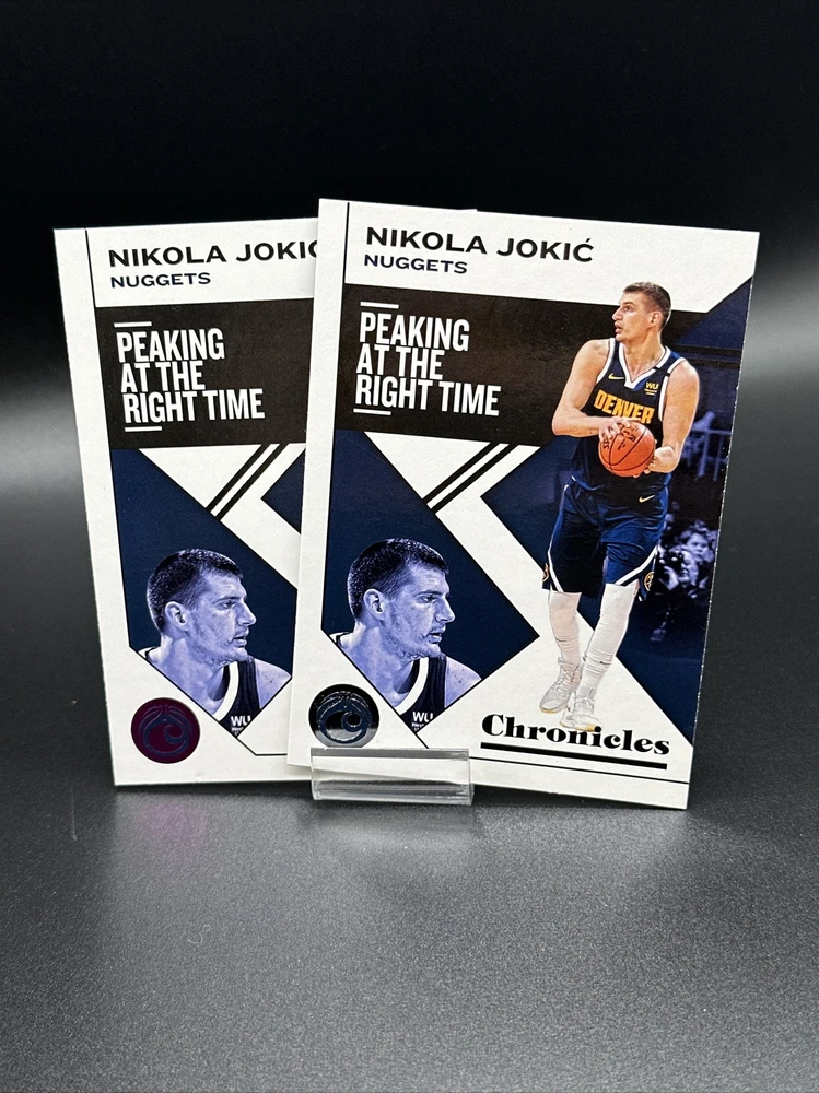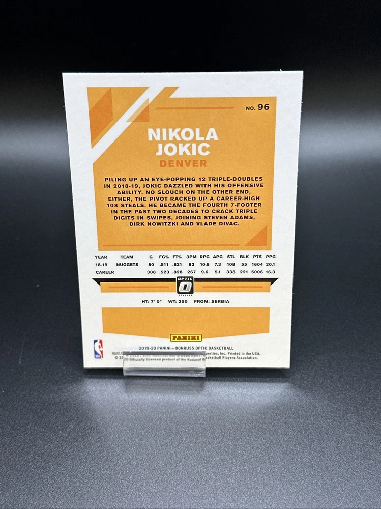This 8 card lot features Nikola Jokić, the MVP of the Denver Nuggets in the National Basketball Association (NBA). Each card is produced by Panini and includes the Optic, Prizm, and Select series. These sports trading cards are perfect for any basketball fan, especially those who admire Jokić's skills on the court. The lot includes cards that showcase Jokić in action and highlight his achievements, making them great collector's items for fans of the Denver Nuggets or the NBA in general. Whether you're looking to add to your collection or simply want to own a piece of basketball history, this 8 card lot is a must-have. Free shipping