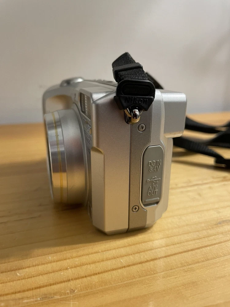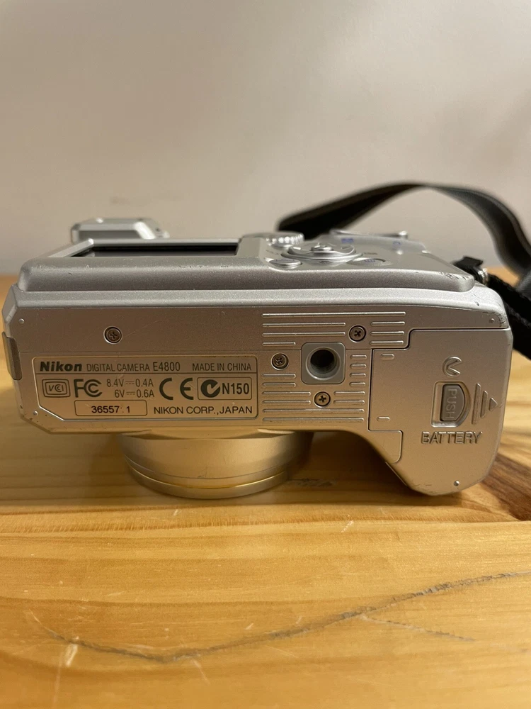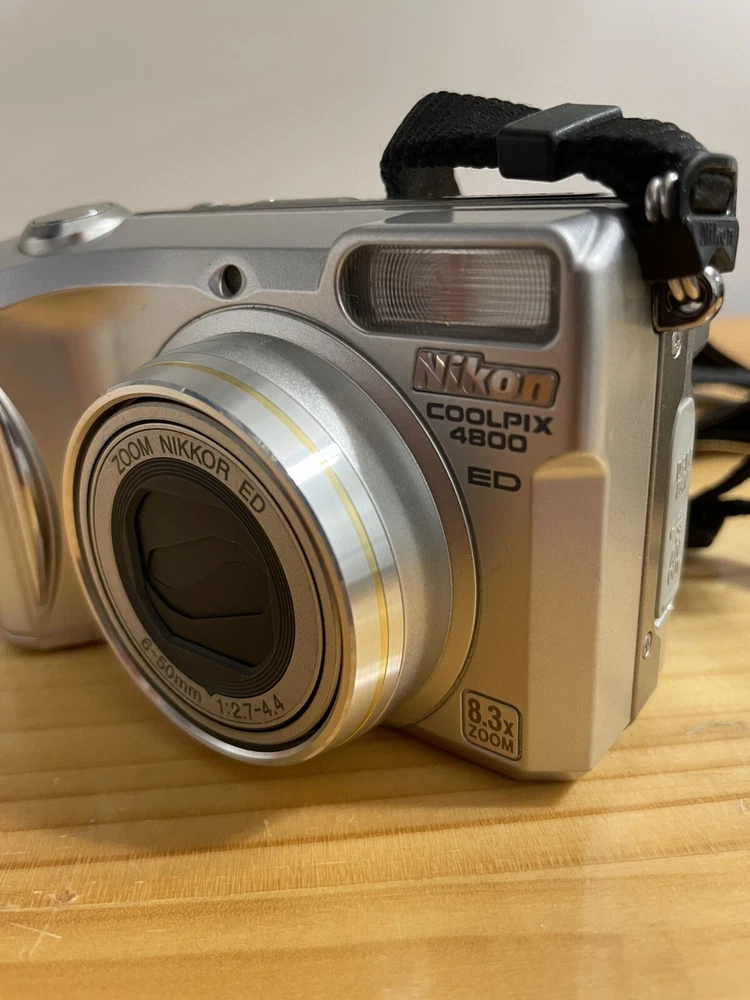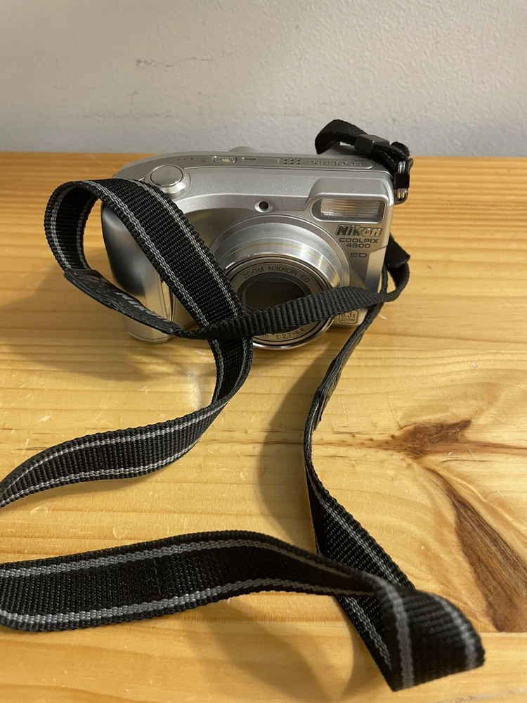 Camera is untested due to no battery . The camera is in overall good condition the battery compartment is clean the on/off button has some wear and please see pictures for details and condition If the camera does not work properly I offer free returns and full refunds The Nikon COOLPIX 4800 is a 4.0MP digital camera in silver, part of the Nikon COOLPIX series. It features an 8.3x optical zoom and 4x digital zoom, providing clear and detailed images. This camera supports various features such as direct print, audio recording, DPOF support, auto power save, and PictBridge support. It uses a Lithium-Ion battery or 2CR5 battery type and weighs 9 oz. It also comes with a strap for convenient carrying while capturing moments.
