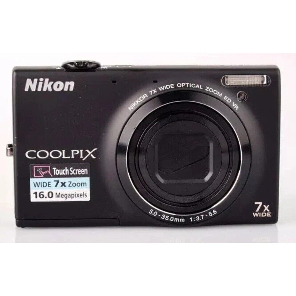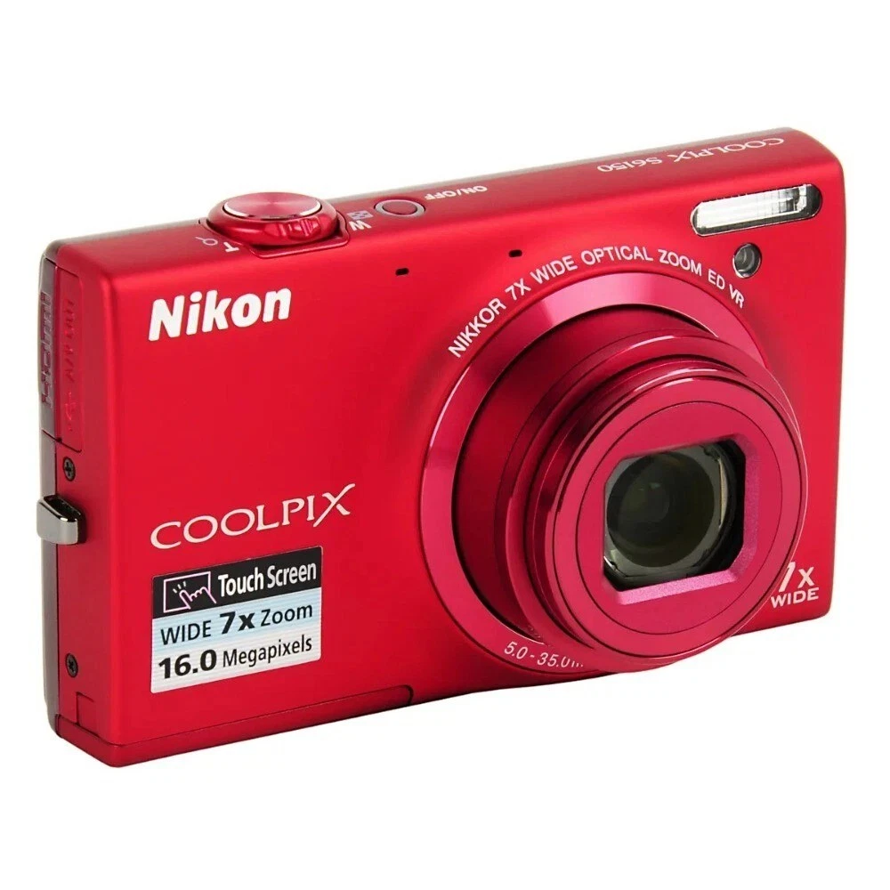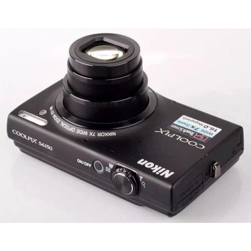 Tips: 1. The pictures are for reference only, please refer to the actual product received. Due to shooting problems, there will be some deviations in the pictures! 2. In addition, Try to avoid exposing the camera to strong light, which may cause the sensor to burn out. 3.If you find any problems after receiving the product, please contact us before scoring, customer service will do our best to deal with you, thank you~ Features: • 7× Optical Zoom (5–35 mm equiv.) with Optical Image Stabilizer helps you capture images with flexibility and ease, from wide-angle to telephoto. • 16.0 Megapixel CCD sensor combines with the DIGIC 4 plus Image Processor to help deliver stunning image quality. • 720p HD video capabilities allow you to record clear, detailed videos. Focusing range: Normal: 2.0 inch - infinity (Wide), 4.3 feet (1.3 meter) - infinity (Tele). • Smart Auto intelligently selects the proper settings based on predefined shooting situations, ensuring you get the best shot. • Digital Image Stabilization helps reduce the effect of camera shake and subject movement. Operating temperature: 32-104°F / 0-40°C. Compatible with Android devices version 4.0 or later. • Scene modes such as Fisheye Effect, Toy Camera Effect, and Monochrome provide creative freedom to capture your photos with a unique touch. The Nikon COOLPIX S6150 is available in a variety of colors to suit your personal style: Black : A sleek and professional look that matches any setting. Silver : A timeless and elegant choice that adds a touch of sophistication. Pink: A playful and vibrant option for those who love to add a pop of color. Red: A bold and energetic color that stands out and makes a statement. Each model offers a compact design that is perfect for casual photography enthusiasts looking for a camera that combines functionality with style. Whether you're capturing everyday moments or exploring new places, the COOLPIX S6150 is ready to help you create memories that last. What's in the box: ●1 x Camera ●1 x Wrist strap ●1x Battery Charger ●1x Memory Card ●1 x Battery