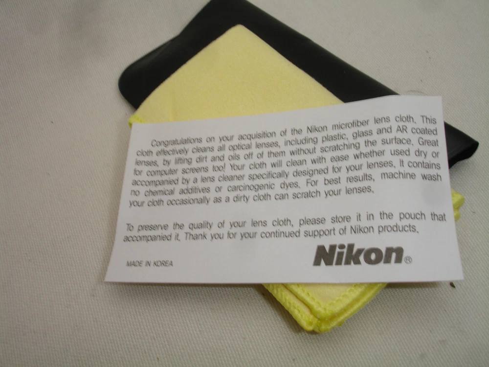 DESCRIPTION Nikon lens cleaning cloth Genuine Nikon item. Pictures represents actual item CONDITION unused SHIPPING Packages will be shipped within 1 business days of payments clearing.