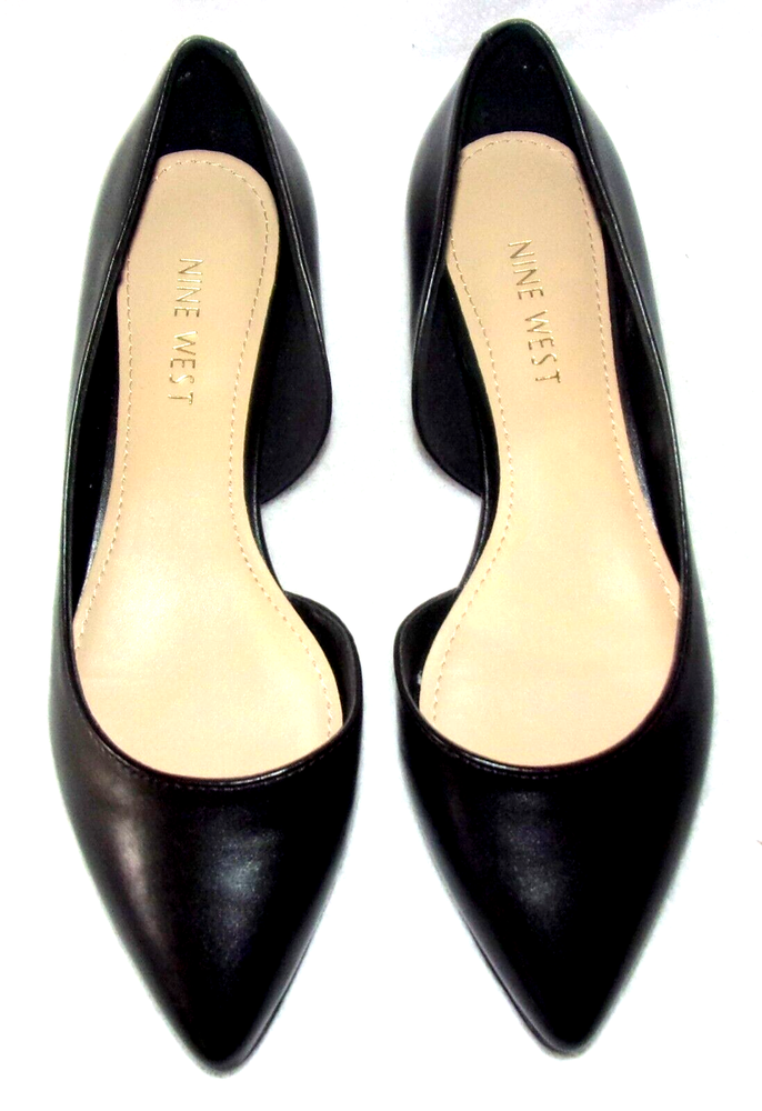 Nine West Black Saige Dorsay Pointed Toe Slip On Flats 6 M D'orsay Ballet Flat Faux-leather upper. Slip-on silhouette. Smooth man-made lining. Lightly padded footbed. Synthetic outsole. Heel Height: 3⁄4