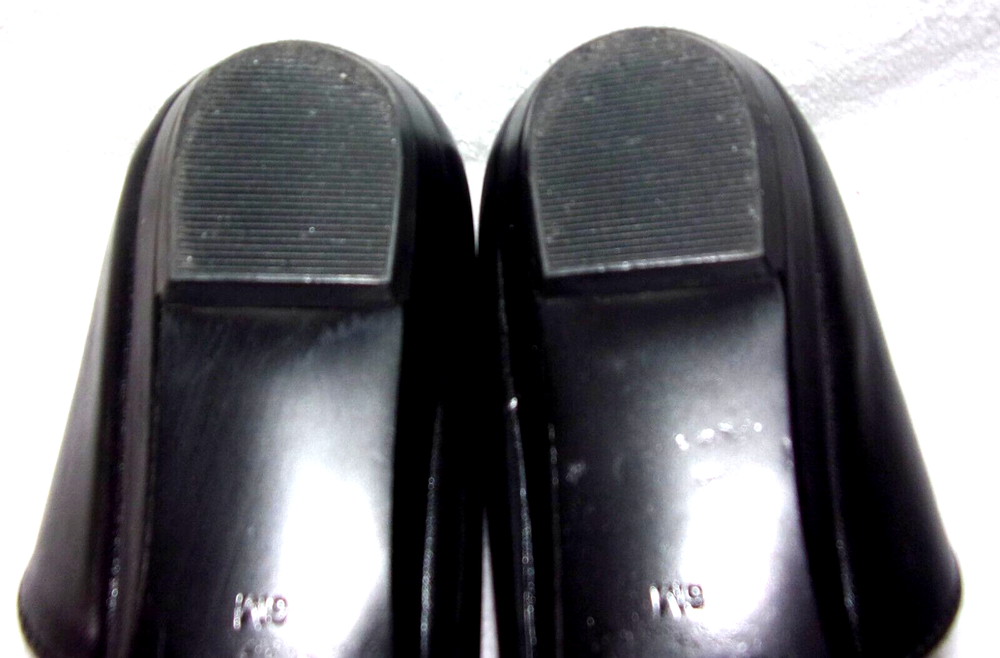 $ 26.4Gucci Women’s 6.5B Black Leather Loafers Square G Silver Logo Plate Dress Shoes