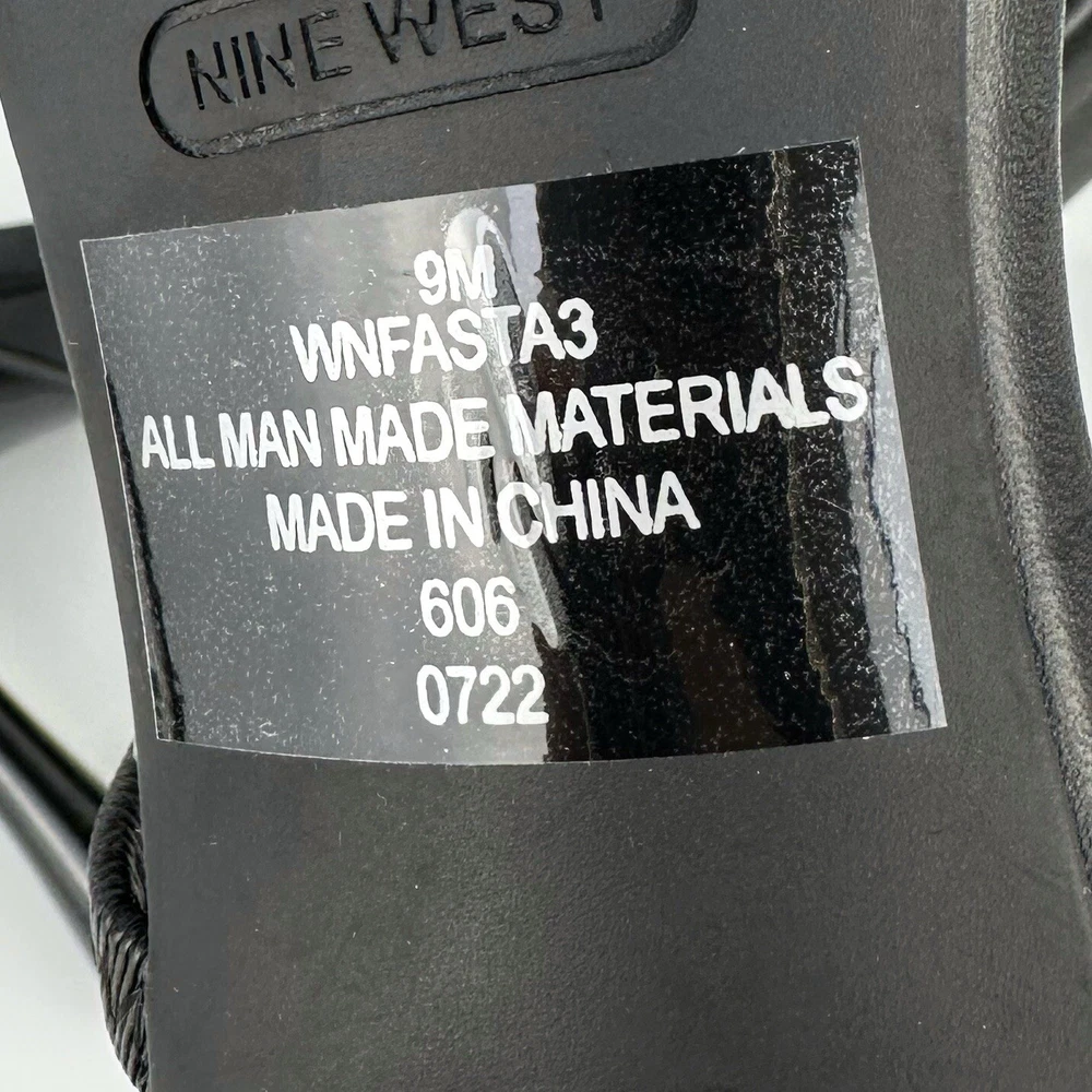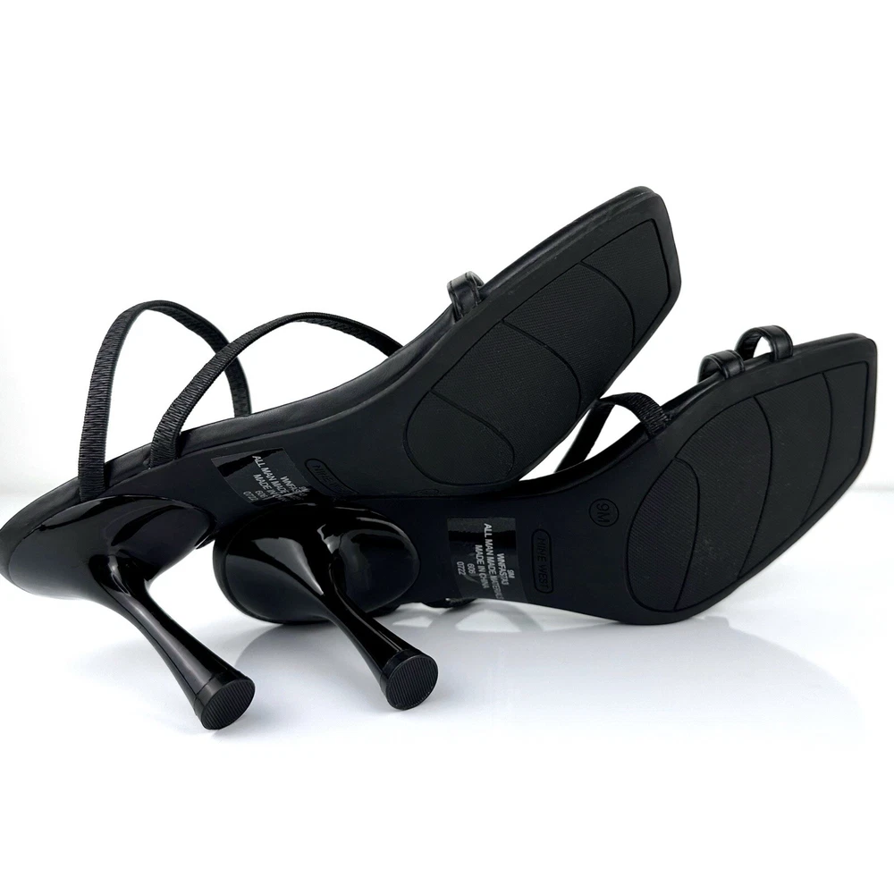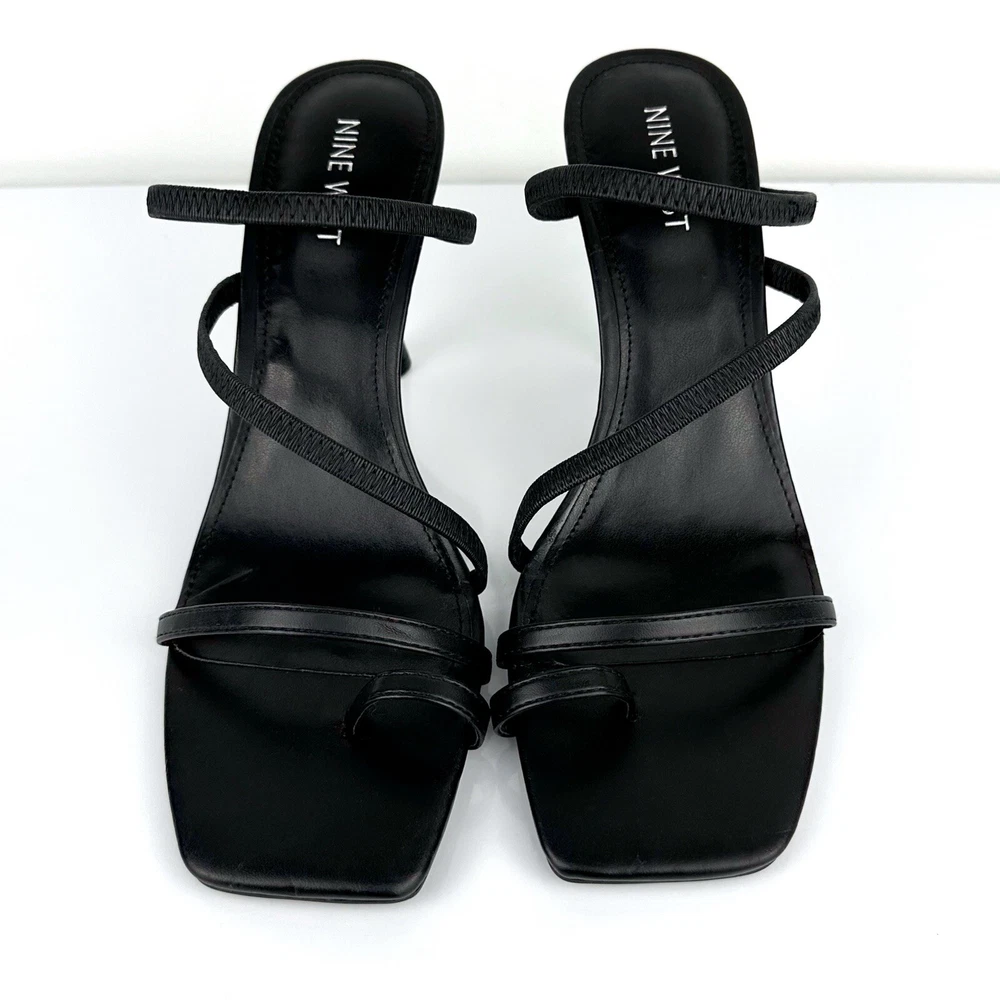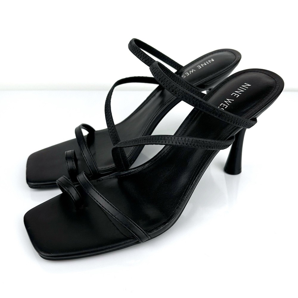 Nine West Women's Fasta 3 Strappy Slip On Sandals in Black are perfect for any formal or party occasion. The slip-on style with straps and a padded feature makes them comfortable to wear all day. Features/Style: - Slip On - Strappy - Open Toe - Stiletto Heel - Lightly Padded Footbed - Material: Faux Leather Upper Size: 9M Color: Black Measurements (approximately): Heel- 3.8" Condition: NEW without box, has some marks from storing not noticeable (please check the pictures), Smoke Free Home
