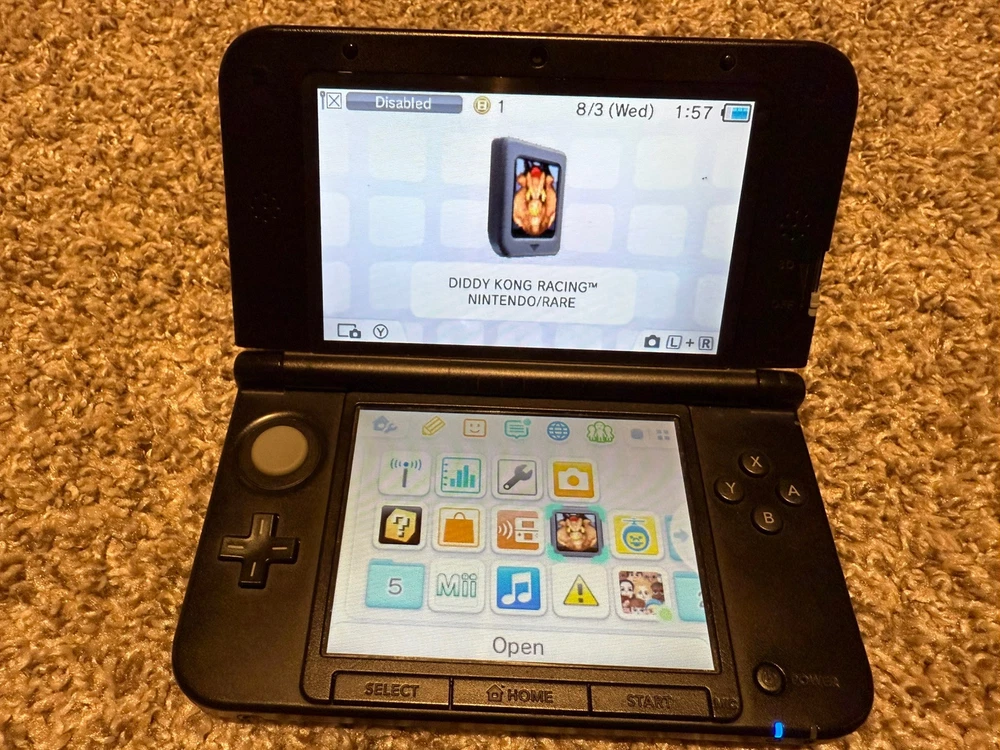 Works great! Only issue is the hinges are starting to loose their integrity and flop around (Does not affect play) and takes about 10-20 seconds for load up presumably due to the age of the console overall works fine! Includes Console 2 games Charger (not pictured) And SD card