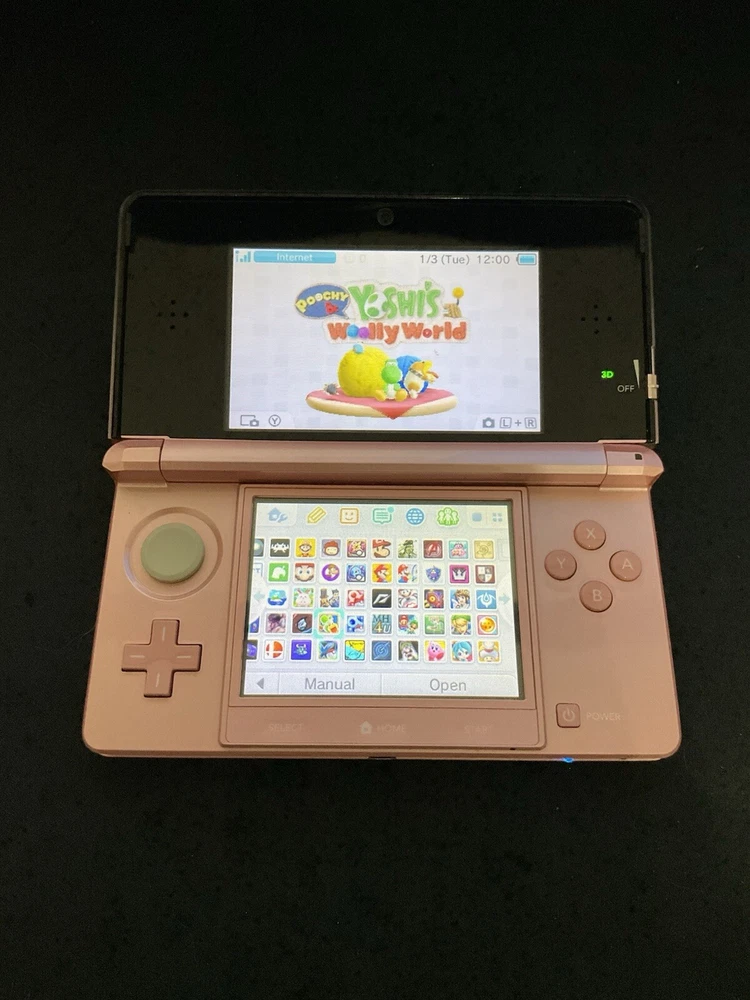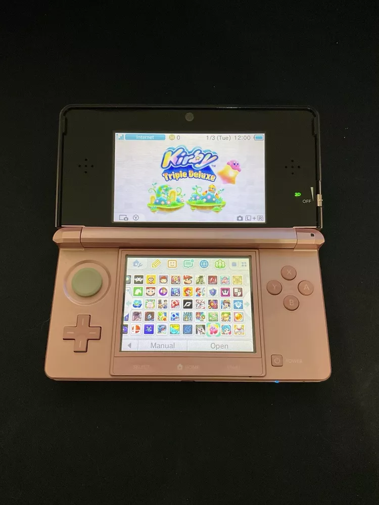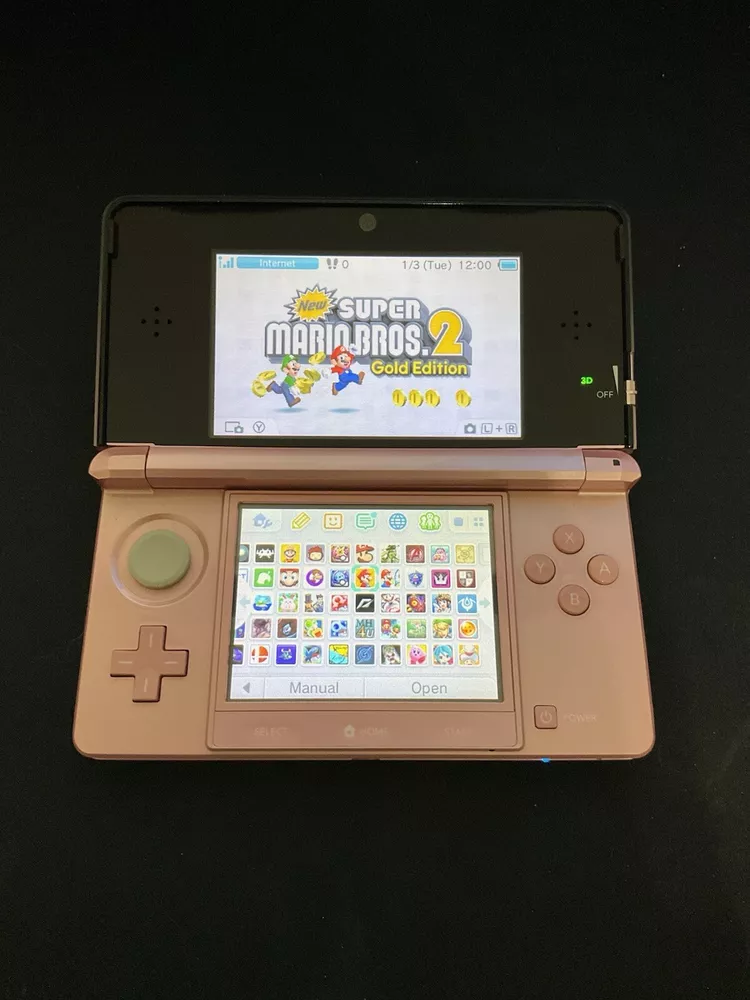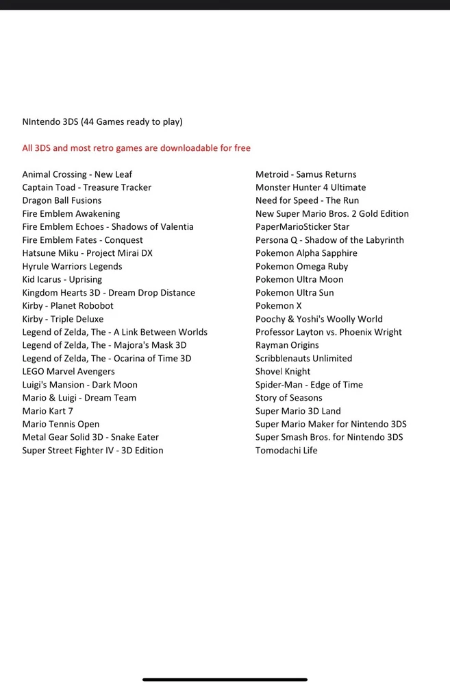 Console in perfect mint condition Original Nintendo 3ds Pink Console tested in great condition Region free, everything set to in English Large 64GB storage with games installed Package included: 44 Full version 3DS games list show in photo Console Stylus Charging cable 64GB micro sd card with adapter Great packaging and fast shipping Ask for more details