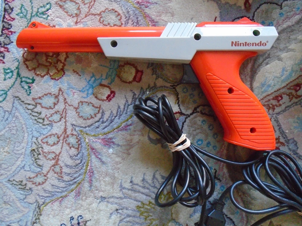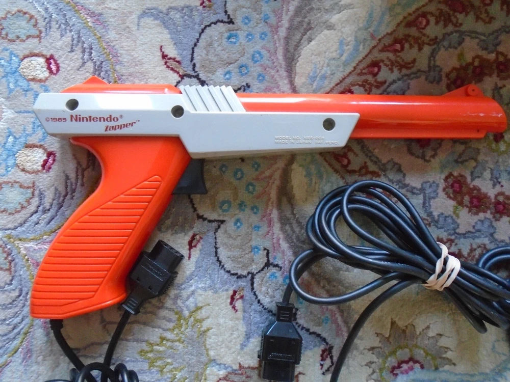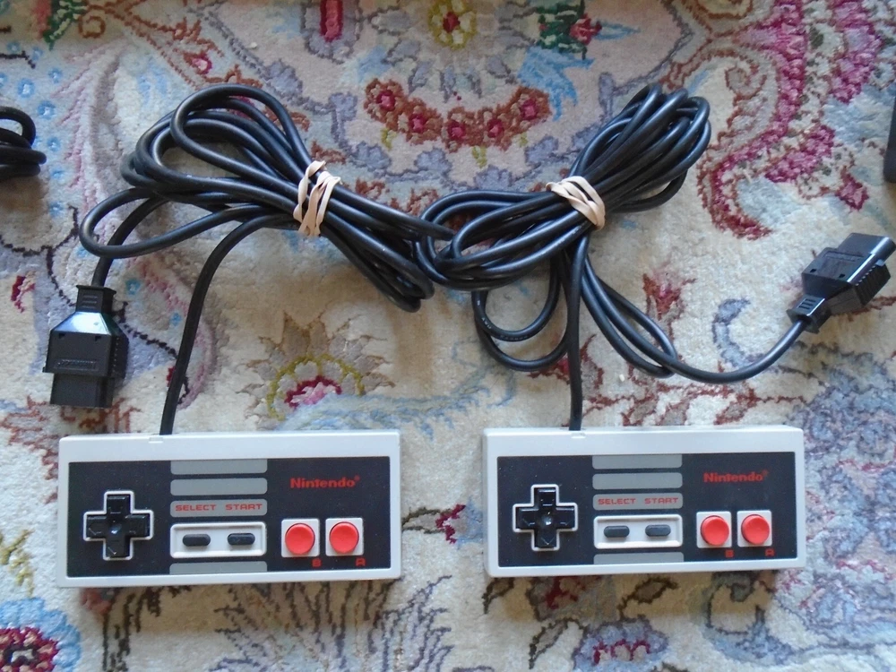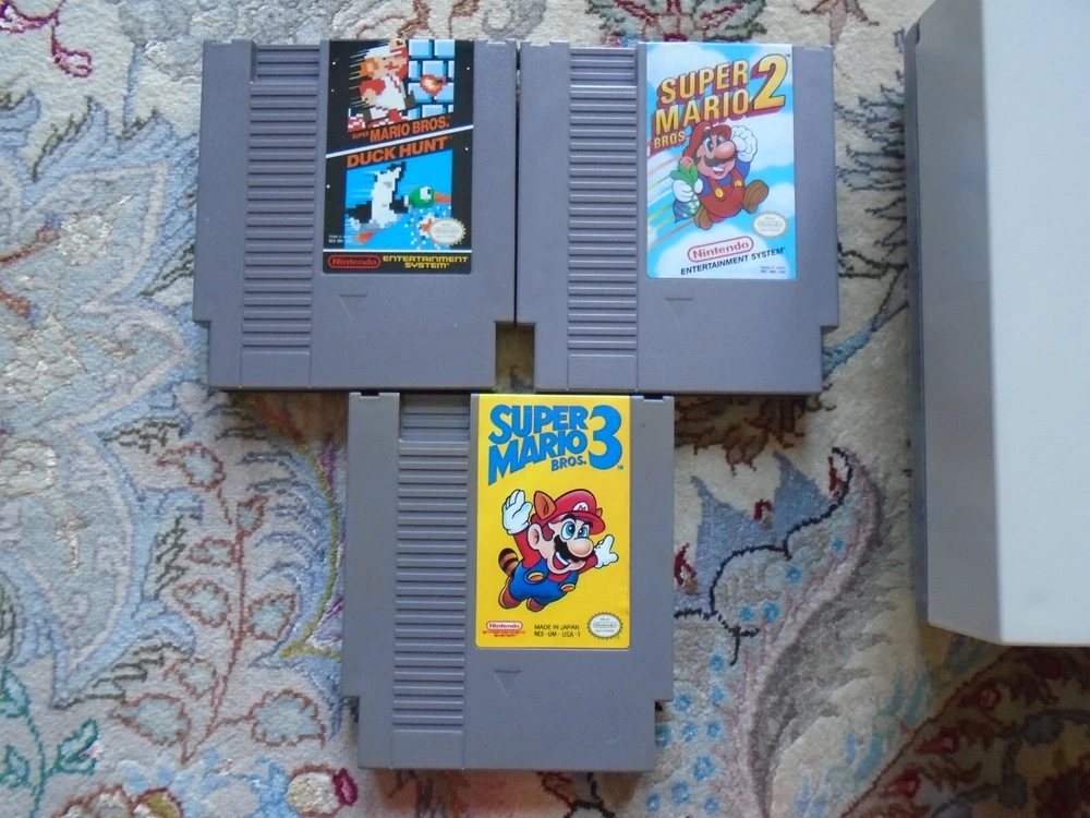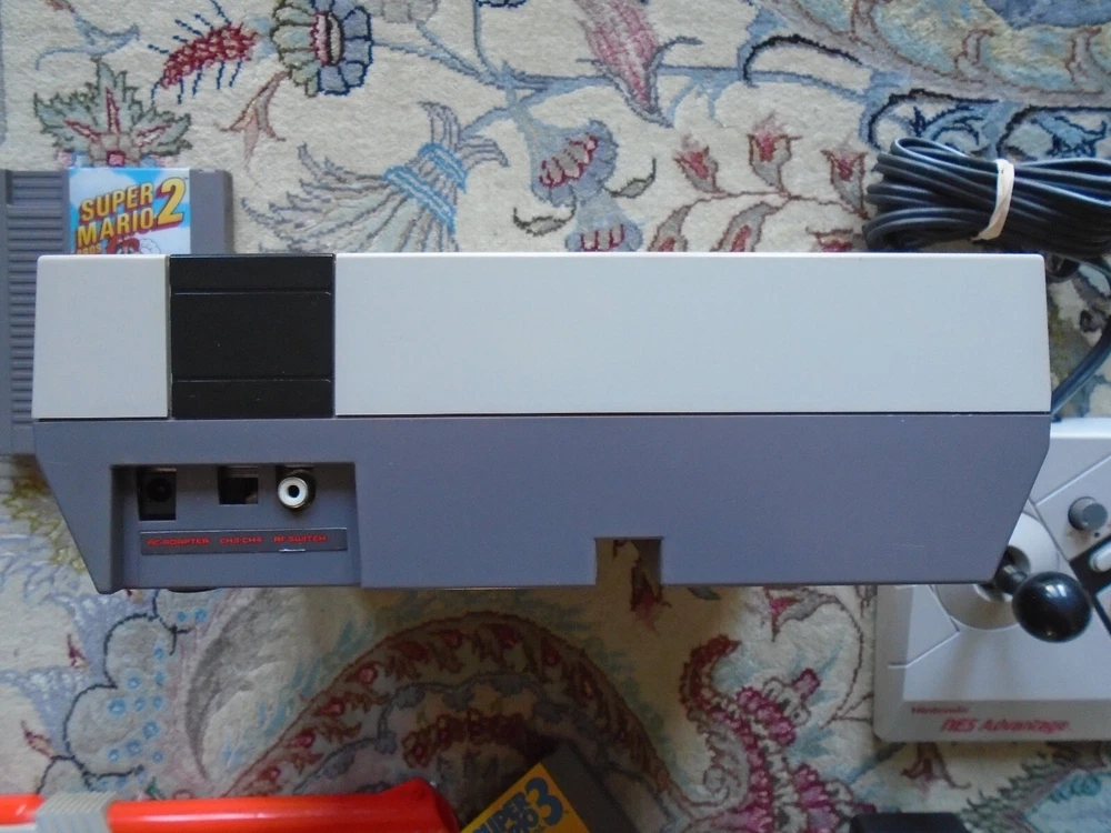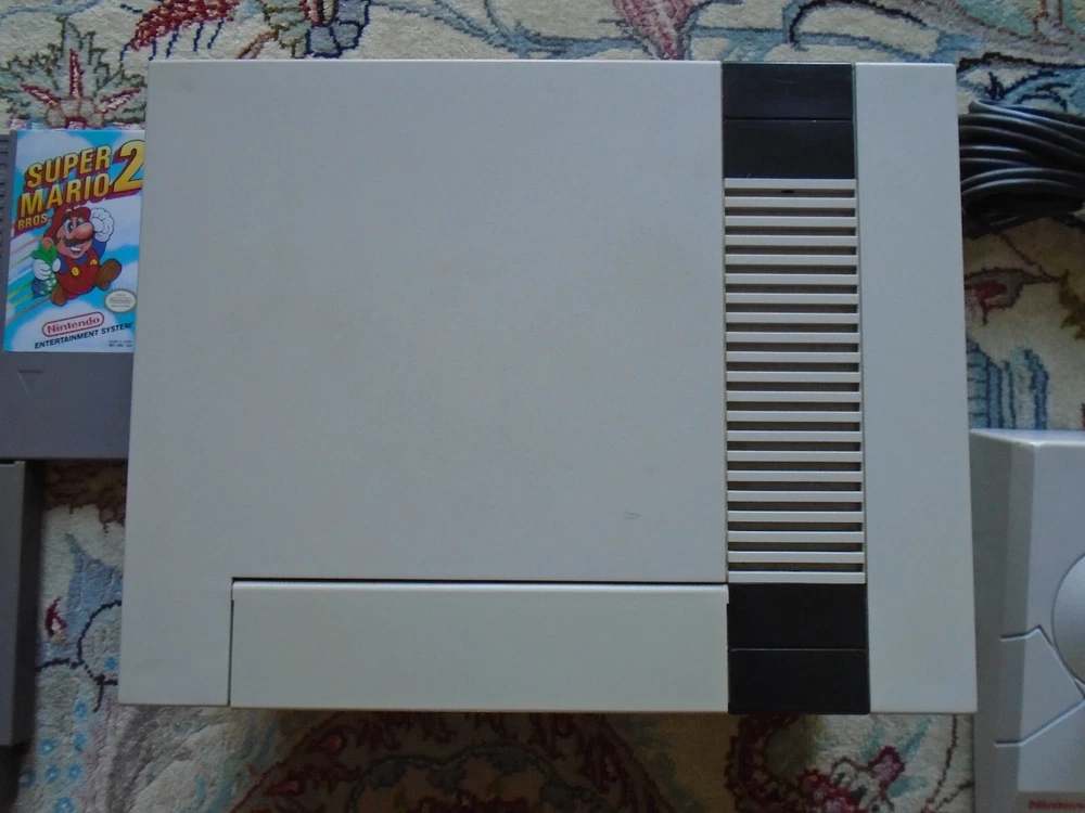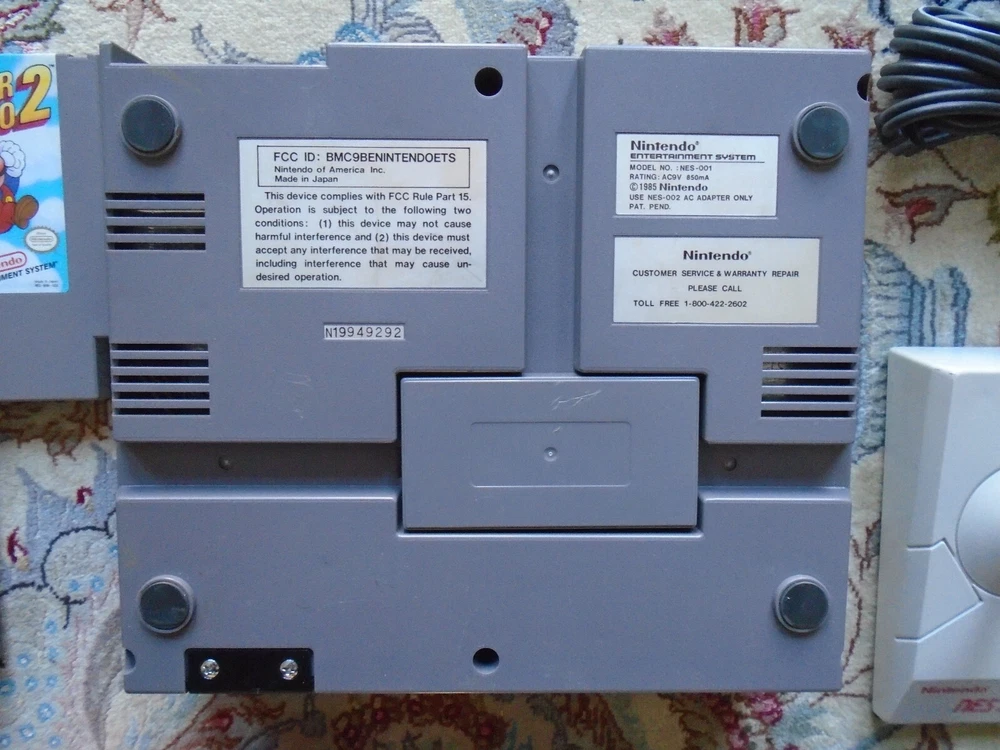 Video game bundle includes: Nintendo Entertainment System console (model NES-001 - original "Toaster" style) 2 OEM controllers OEM NES Advantage arcade joystick controller OEM Zapper light gun controller Necessary cables (OEM AC Adapter power cable and third-party composite audio/video cables) 3 games included: Super Mario Bros. / Duck Hunt Super Mario Bros. 2 Super Mario Bros. 3 Functionality and Cosmetic Condition: Everything is fully tested and working perfectly! The items are in good to excellent used condition, with some signs of wear and a couple small chips off the console's casing. The console has some yellowing occurring on the casing. PLEASE NOTE: The Zapper light gun controller worked, but only on a CRT (Cathode-Ray Tube) TV, and will not work on newer TVs (flat panel/rear-projection). The Zappers were only designed to work on CRT TVs. The items come from a smoke-free, pet-free home. The photos are of the actual items being sold. We only accept returns if the items were not described correctly. Thank you for viewing our auction and good luck bidding!