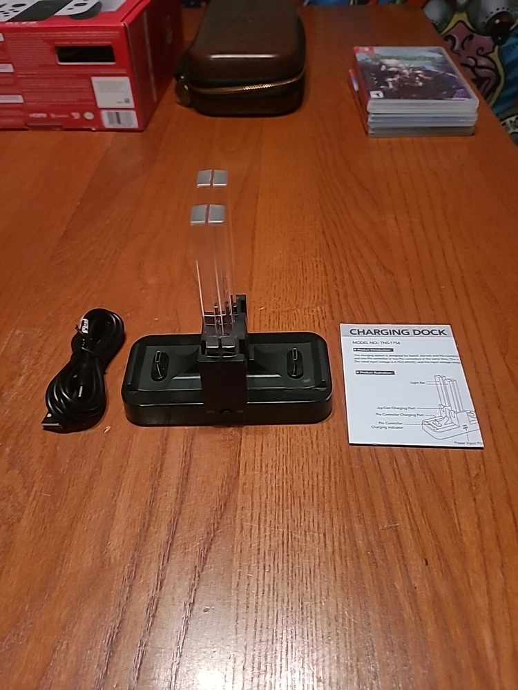 Nintendo Switch Oled Bundle The Console: Includes an OLED model switch, the dock, the power adapter, an HDMI cord, a joycon grip, joycon straps, and a set of joycons. Everything is in good condition. There is some residue on the back of the switch from a sticker I used to have on there. The screen has no scratches that I'm able to see. Includes the original box, but not the interior packaging. There is a 128 GB micro SD already installed. ***THIS DOES NOT INCLUDE THE ORIGINAL WHITE JOYCONS, ONLY THE BLUE/YELLOW ONES SHOWN*** Accessories: The console has a glass screen protector already installed. An Atrix carrying case is included. It also includes a charging station that can hold 4 joycons or 2 pro controllers. Games: Includes Minecraft, Terraria, and Animal Crossing New Horizons. This was my personal console; I did my best to keep it clean and in good condition. It has already been factory reset and may need to be updated on startup. Everything will be packaged with the utmost care. Feel free to reach out with any questions or concerns! Open to offers!