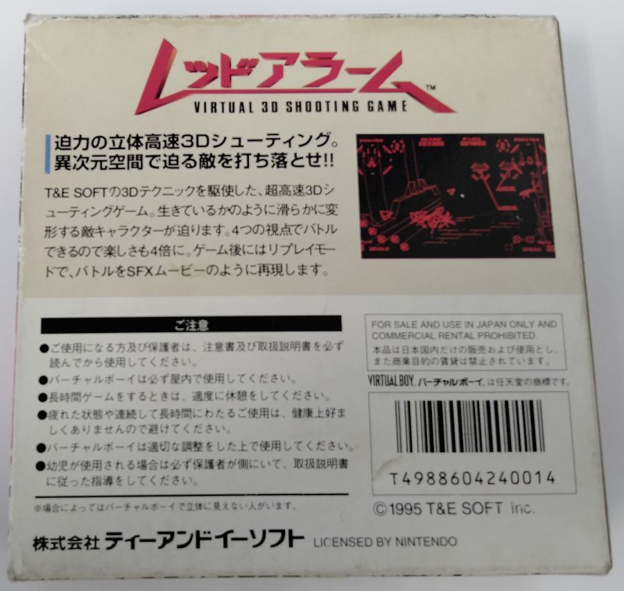 Nintendo Virtual Boy Red Alarm Japan Version Complete with Box and Manual 7362 SP