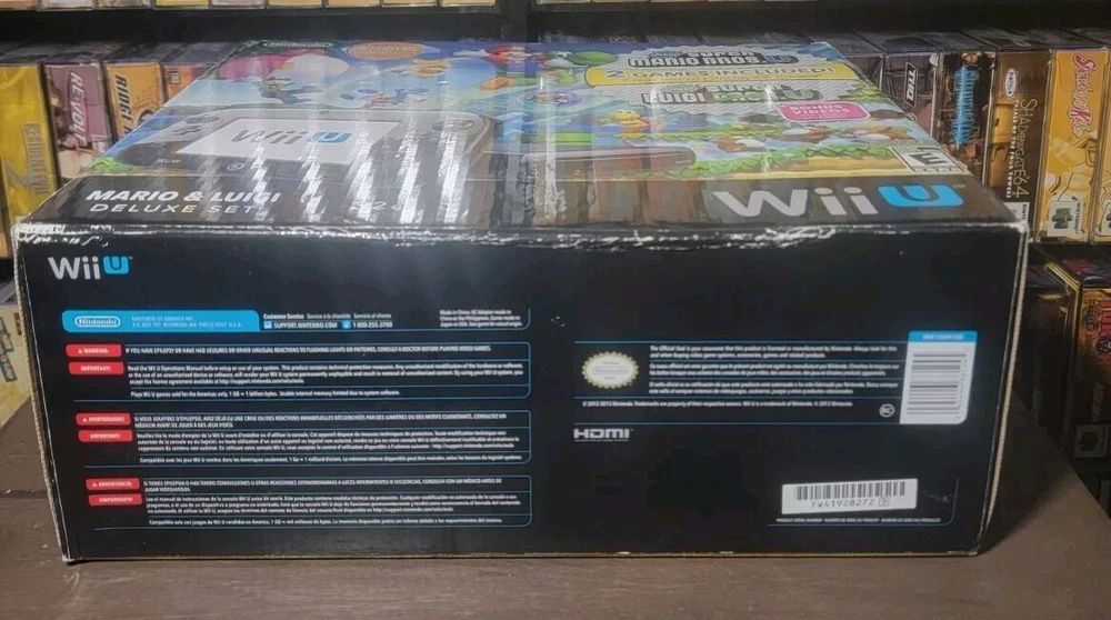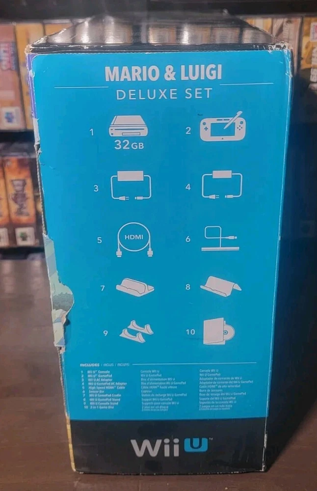 This is a rare opportunity to own the box of the popular Nintendo Wii U Mario & Luigi Deluxe set. The black box, designed to hold the 32 GB console, is in pristine condition and is perfect for collectors or those looking to complete their set. It features the iconic Mario and Luigi characters and is compatible with USB connectivity. The box is suitable for home console gaming and is compatible with NTSC-U/C (US/Canada) region codes. Get your hands on this limited edition box before it's gone!