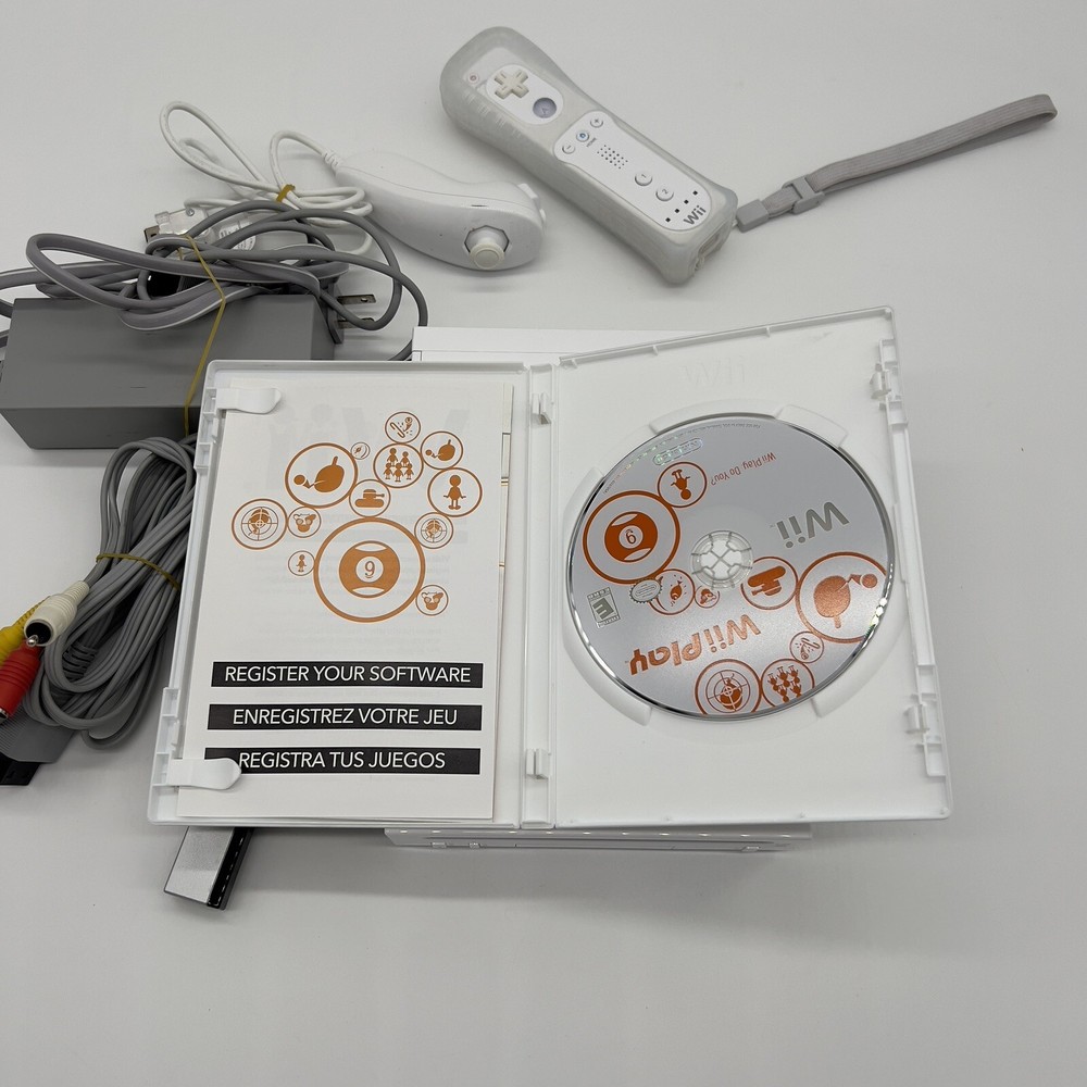 Nintendo Wii White Console Bundle W/ Wii Play RVL-001 GameCube Compatible Tested and working. READY TO PLAY