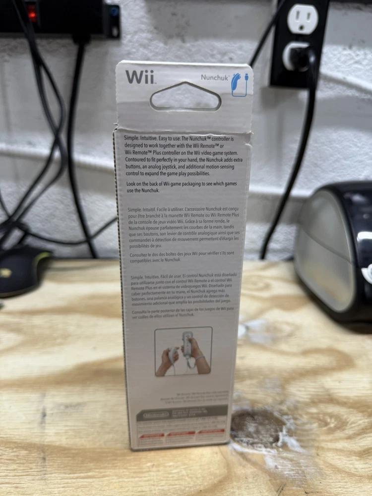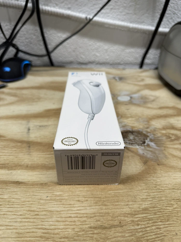 The Nintendo Wii White Nunchuck Controller is an OEM original accessory designed specifically for the Nintendo Wii gaming system. This new, sealed controller attachment is wired for connectivity and is compatible with both the Nintendo Wii and Wii U consoles. The white color and original brand highlight its authenticity and quality, making it a reliable addition to enhance gameplay experiences for a variety of compatible games on the Nintendo Wii platform. SEALED BRAND NEW WII NUNCHUCK. NEVER OPENED. FAST SHIPPING.