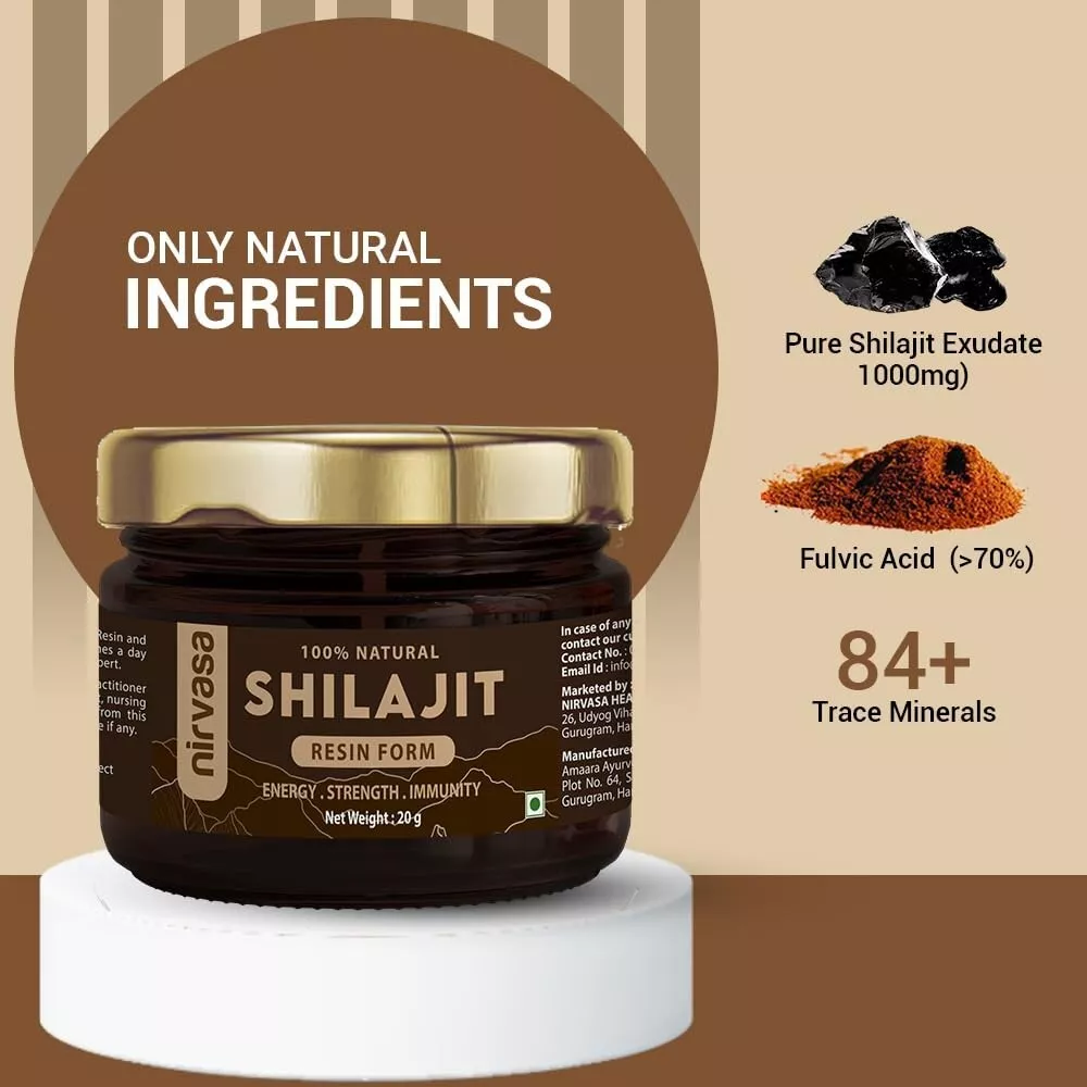 eBay eBay Product Description : Nirvasa Pure Original Himalayan Shilajit/Shilajeet Resin 20g Each | Improve Strength & stamina for men & women | Stronger Than Pills & Capsules ( Increases S#X Power ) , 100% ORIGINAL GUARANTEED Shilajit Resin from the house of Nirvasa is comprised of several health benefits. Since the ancient times, Shilajit has been used in Ayurveda to cure a plethora of diseases and problems. The Shilajit Resin from Nirvasa is a non-toxic, immune strengthening, and energy-boosting infusion of pure Shilajit extracts, clubbed with 70%+ Fulvic acid suitable for both men and women. Regular and correct consumption of this magical gift of mountains is beneficial in boosting energy and promoting the workout performance. Efficacious immunity accelerator Himalayan Shilajit resin for men and women It may slows down aging, boosts energy, relieves stress and improves brain functions More than 70% Fulvic acid and 84+ minerals and trace elements in pure shilajit exudate Contains anti-oxidants to increase strength and preserve healthy glowing skin Why Nirvasa Shilajit Resin is known as Immunity- Energy Seeder & Performance Facilitator? Nirvasa Pure Shilajit Resin with >70% fulvic acid is a non-toxic, may act as an immunity enhancing, and energy-boosting supplement. Being a god’s gift from the ancient times, the consistent and correct consumption of our Shilajit resin for men and women helps upgrade immune system functions and increase energy levels, promoting healthy body performance. Along with over 84+ minerals (like silica, magnesium, sodium, etc.), fulvic acid (a rich source of Oxygen (O2)), this purest and natural Shilajit resin helps in improving healthy digestion and neuro functions. B oosts Immunity Perimeters defensive mechanism of Nirvasa’s Shilajit resin may safeguard cellular immunity and infuses energy enhancing vitals. Nirvasa’s Pure Shilajit resin in India comes with a triple health blend of Himalayan Pure Shilajit exudate, more than 70% of fulvic acid and 84+ trace minerals, which is one of the best remedies to boost immunity naturally. Virus Walling With excellent virus resistivity, this Pure Shilajit helps possess respiratory tract cleansing ability to keep you healthy and fit. It may enhance the brain functionality while protecting cells against virus breach. Derma & Digestive Savvy While being prompt in skin heal-seal and improving skin health, Shilajit resin for men and women from Nirvasa supports digestion and helps you look young. N ot only for Men, But for Women too Nirvasa is known for producing Pure Shilajit which is formulated not only for men, but for women too. Containing more than 84 minerals, our Shilajit resin helps enhance strength and energy. It may support anti-ageing, stimulating metabolism, and reducing stress. P erfect Catalyst for Enhancing Performance Fulvic acid present in Nirvasa’s pure shilajit resin helps increase strength, relieve stress of the body and boost overall performance, in bed as well as in gym. By boosting energy levels, it helps to keep you active throughout the day. Feel the Power with Nirvasa Pure Shilajit Pure Shilajit Resin Exudate for Men & Women It helps protect against cellular damage and safeguard healthy cells, thereby, boosting immunity and energy. Nirvasa’s Shilajit resin improves circulatory function, improves digestion, and prevents premature hair greying. Apart from that, it also promotes bone and skin health. It also helps boost immune health, and treat respiratory congestion. E ffective >70% Fulvic Acid Naturally occurring, fulvic acid is an organic substance known for its ability to elevate the bioavailability of minerals and nutrients in the body. It’s due to its low molecular weight allowing it to pass through the body’s membranes without any hassle and go directly into the cells, taking vital minerals and vitamins with it. In addition to its powerful ability to improve the absorption rate of nutrients and minerals, fulvic acid present in pure shilajit resin is also known for supports protein synthesis, metabolism, neutralizes free radicals due to its high antioxidant levels, and reduces pain and inflammation. 8 4+ Trace Minerals Because pure shilajit exudate is formed right from the right Himalayan Mountain rocks which is present in Nirvasa’s shilajit resin, its mineral content is extremely high. It may contain as much as 84+ minerals and trace elements. The myriad of health benefits of taking trace minerals to increase the body's nutrient absorption is why Shilajit is such a substance of importance in Ayurvedic medicine and sought after supplement around the world. What Makes Nirvasa Pure Shilajit Resin Safe & Effective? Energy Optimizing Resin Pure Shilajit exhibits energy management features. Mineral-rich Shilajit Resin holds energy-boosting attributes that engage its bio-essential to revive and surplus energy. Shilajit might take participate in cell functions in the body, and may reduce tiredness at the source of the problem and upsurge the energy levels naturally. Digestion Facilitator Facilitates nutrition absorption and prevents indigestion. Shilajit resin for men and women from Nirvasa activates digestive enzymes for efficient digestion and maintains your stomach health. Also, it helps in healing digestive issues that include constipation, indigestion, and other stomach conditions that may cause due to cause pain. Maintains Skin Integrity Nirvasa’s pure shilajit resin helps maintain healthy and glowing skin. Fulvic acid helps delay the early signs of aging, exfoliates the skin and helps in sloughing off the outer layer of the skin. Due to the presence of Fulvic acid, Shilajit is responsible for accelerating and regulating signs of ageing. Immune Modulator Natural immunity stimulator, Nirvasa’s Shilajit Resin inherits cell nourishing characteristics that boost the function of the immune system. With improved immunity, you stay safe and healthy. Along with it, it also helps to reduce