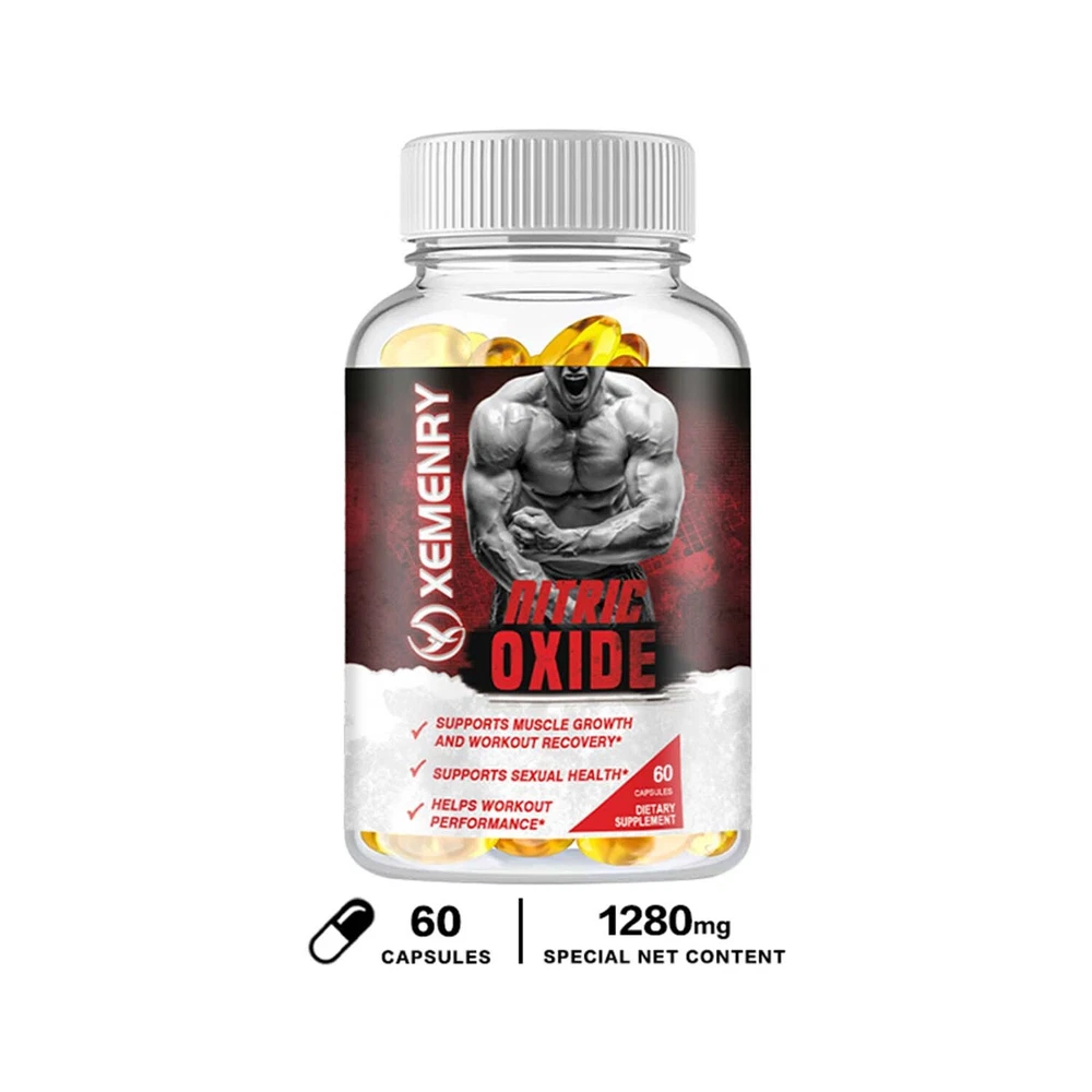 Effects: Testosterone Booster, Energy & Endurance Ingredients: L-Arginine Directions: Take 2 capsules once daily after a meal. Shipping: Ships within 48 hours on working days. Shelf life: 2 years Description: BUILD MUSCLE MASS AND RECOVERY: Nitric Oxide capsules are specially formulated with L-Citrulline and L-Arginine to support heart and muscle health, improve circulation and normal post-workout recovery. Workout Supplement - Our Nitric Oxide helps maintain energy levels during exercise. Feel the difference before, during and after your workout and get to your workout level. You can expect significant and reliable increases in energy, focus, pump, strength and muscular endurance. TRUSTED FORMULA: Our Nitric Oxide capsules are formulated and bottled under strict GMP guidelines. Third party tested to ensure quality and purity. Document