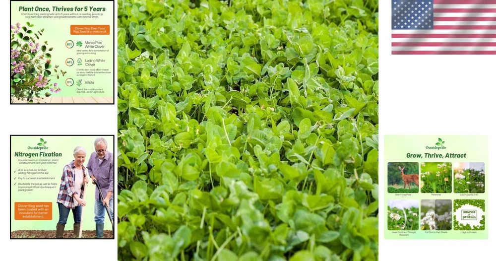 Nitrocoated 10 lbs Clover King Seed Mix - Attracts Deer & Wildlife Year-Round ‹ › ‹ › ‹ › ‹ › ‹ › ‹ › ‹ › ‹ › ‹ › Nitrocoated 10 lbs Clover King Seed Mix Attracts Deer & Wildlife Year-Round Key Features: Specially formulated to attract whitetail deer and other wildlife Low maintenance — requires minimal upkeep once established Nitrocoated and inoculated for enhanced germination and robust growth 50% Marco Polo White Clover, 40% Ladino White Clover, and 10% Alfalfa Thrives for up to 5 years without re-seeding High-protein forage essential for antler growth and overall deer health Heat, cold, and drought resistant for seamless planting and growth Versatile, suitable for USDA Zones 3-10 Aids in soil stabilization and erosion control Benefits: Support healthy herd development with minimal effort Enhance deer population nutrition with nutrient-rich forage Adaptable for various climates, ensuring thriving plots year-round Create thriving food plots in any season, promoting continual forage availability Effective erosion control, enhancing land health Why Choose Nitrocoated Clover King Seed Mix? Elevate your wildlife management game with our Nitrocoated 10 lbs Clover King Seed Mix, meticulously designed to attract and sustain deer and other wildlife effortlessly. This incredible blend not only enhances germination rates but also guarantees robust growth, ensuring that your food plot remains a reliable source of nourishment for years to come. With its unique combination of clover and alfalfa, this seed mix provides high-protein forage vital for antler development and overall deer health, allowing you to foster a thriving deer population right in your backyard. Don't wait to enhance your land; invest in the Clover King Seed Mix today and witness the wildlife flourish before your eyes! Shipping Free & Fast Shipping - We offer free shipping to most of the USA with a normal delivery time of 3-7 days. However, due to the current situation, additional delivery time (up to 3 weeks) may be required for some items. Alternative Carriers - We may use alternative carriers (e.g. USPS, FedEx, UPS, etc.) to ensure your package arrives safely and on time. Due to the use of multiple carriers, we are unable to provide a tracking number automatically. Handling Time - Orders are processed and shipped within 1-2 business days of receiving cleared payment. Shipping Restrictions - Shipping to Alaska, Hawaii, Puerto Rico, Guam, and other US territories may incur shipping charges or delivery restrictions. Please contact us before ordering, or your order can be refunded/cancelled. State Restrictions - There may be restrictions based on your state of purchase. For example, certain items may not be shipped to California due to state regulations. Contact for Tracking Updates - If you require tracking updates or have any concerns about the delivery of your order, please feel free to contact us, and we will be happy to assist you. Return 30-Day Hassle-Free Returns - We want you to be completely satisfied with your purchase. If you are not, you can return the item within 30 days of receiving it for a full refund or exchange. Easy Return Process - To start a return, simply contact us and we will provide you with a prepaid return shipping label and detailed instructions. Restocking Fee - There are no restocking fees for returns. However, the buyer is responsible for return shipping costs if the return is not due to a seller's error. Refund Processing Time - Refunds will be processed within 5 business days of receiving the returned item in its original condition. Payment We accept all major credit cards, PayPal, and Apple Pay for your convenience. Your payment information is secure and encrypted to ensure a safe and seamless transaction. Please complete your payment within 3 days of purchase to avoid any delays in shipping. Feedback Your feedback is extremely important to us. We strive to provide the best products and customer service possible. If you are satisfied with your purchase, please take a moment to leave us a positive review. If you have any concerns or issues with your order, please contact us before leaving negative feedback. We are committed to resolving any problems and ensuring your satisfaction. Contact Us If you have any questions or concerns, please feel free to reach out to our customer support team. You can contact us through the eBay messaging system. We are available Monday to Friday, 9:00 am to 5:00 pm EST, and we will do our best to respond to your inquiry within 24 hours. Buy it now and enjoy a pleasant shopping experience! UPC: Not Set Unit Quantity: 10 lb Features: Draught Resistant,Nitrocoated,Inoculated,Heat Tolerant,Cold Tolerant,Alfalfa-Enhanced,Low Maintenance,Erosion Control,Year-Round Use Season of Interest: Spring,Summer,Winter Sunlight: Full Sun,Partial Shade Climate: Humid Continental,USDA Zones 3-10 Color: White Soil Type: Loam Brand: Unbranded Type: Food Plot Seeds Common Name: Clover Genus: Trifolium Life Cycle: Perennial Watering: Light Indoor/Outdoor: Outdoor Cultivating Difficulty: Easy MPN: Not Set Country/Region of Manufacture: Not Set Growth Habit: Clumping Soil pH: Neutral Planting Time: 1 Week Unit Type: lb