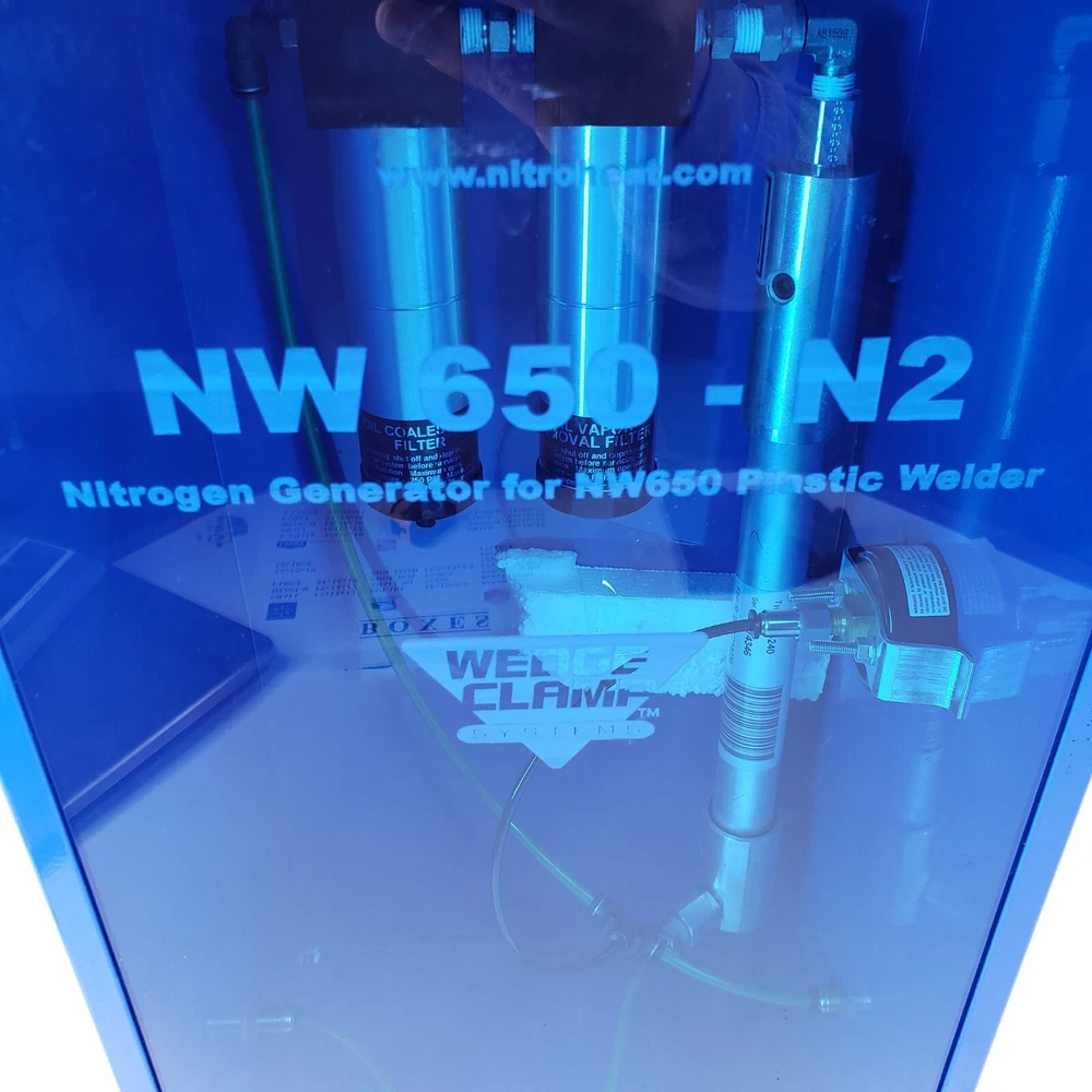 Nitroheat NW 650 N2 Nitrogen Generator for NW650 Plastic Welder Wedge Clamp Systems. LOOKS TO BE IN EXCELLENT CONDITION BUT UNABLE TO TEST SO BEING SOLD AS IS.
