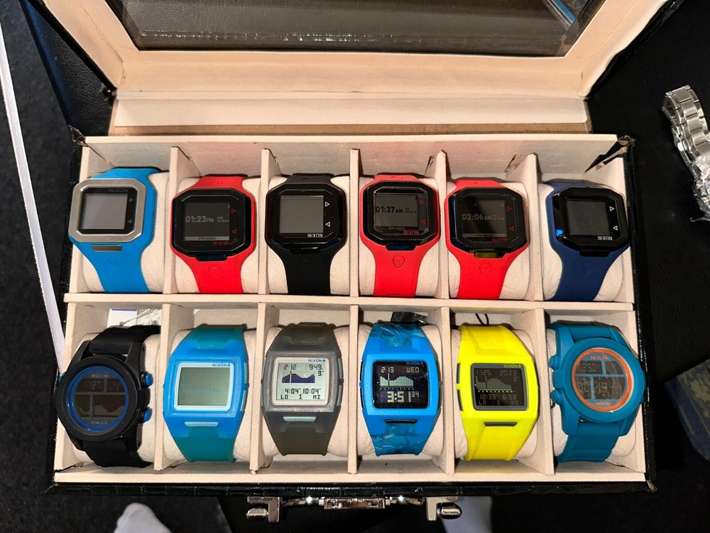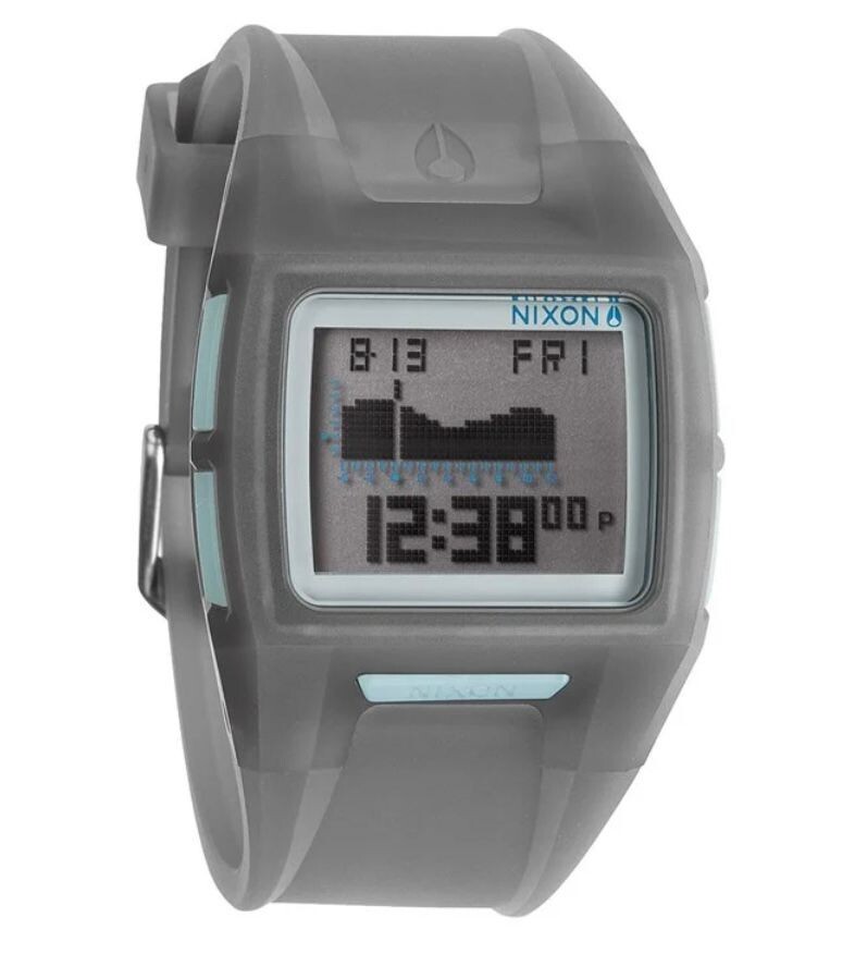 This Nixon lodown II watch is a versatile timepiece suitable for various occasions. It features a gray bezel, case, and band, along with a gray dial. The watch has a square shape and is powered by a quartz movement. The watch is water-resistant up to 100 meters and is shock-resistant, ensuring durability. It has a digital LCD display and features a 24-hour dial, alarm, day/date, multifunction, world time, and chronograph. The watch is made by Nixon, a renowned brand, and is perfect for men who want a diver, sport, casual, or classic watch.