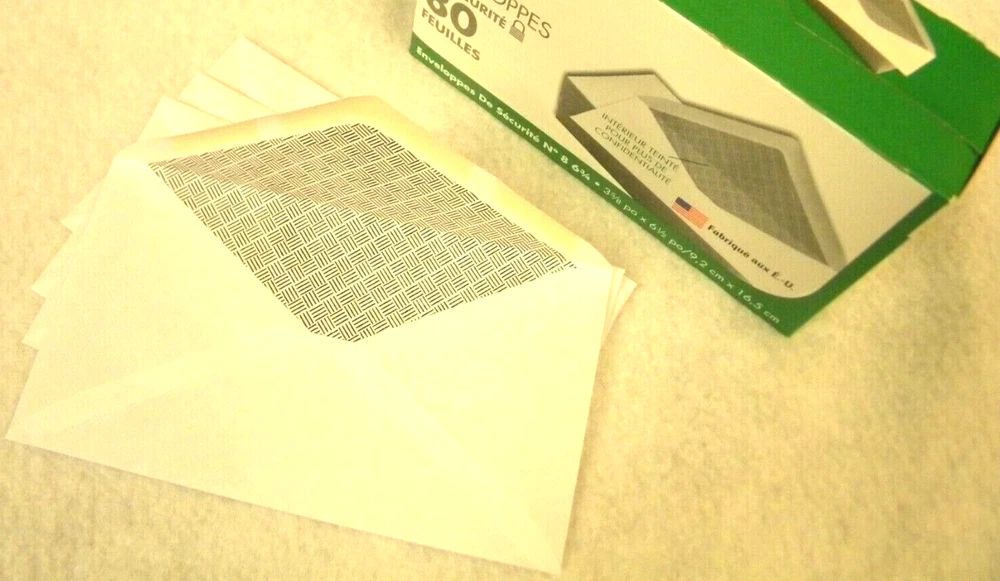 No # 6-3/4 Check Size White Security Envelopes Made in USA by Mead Box of 50 Genuine high quality Mead Brand - Made in USA Highest quality 20 lb. White Wove Inside security tinted for no see through Standard number 6-3/4 size check size personal envelope 3-5/8 x 6-1/ inch size, 9.2 x 16.5 cm Box of 50 envelopes Tab re-close box Shipping charge by USPS is actual based on weight and your location As with ALL of our listings – we offer a 14-day or longer money back guarantee for items returned in the same condition . Our business depends on customer satisfaction. Browse our store “Yard Barn Estates” Where you will find an array of NEW and VINTAGE items, tools, writing instruments, office supplies, collector toys, CD's, music, historical magazines, coins & currency, collector books, artwork, collector cameras, and other unique items from recent estate and business liquidations. Visit often. Our inventory changes daily. Sign up for my email newsletters by adding my eBay Store to your Favorites Shipping and Handling Charges : For every item, we offer the most economical yet practical and safe method of shipment. We prefer to ship by USPS Priority Mail. It is fast, economical and includes tracking and guaranteed safe delivery. Media Mail and Parcel Post shipments often take 1-2 weeks in the postal system. On some items, more than one shipping method is offered. At checkout, be sure to choose the shipping method and cost that is right for you and carefully consider how long you can wait for your purchase to arrive. We normally ship every day and usually are able to ship items the same day or next day after receiving confirmed payment. For Non-US buyers : Please make sure this item can be legally shipped to your country before bidding. We ship most items worldwide. For your protection and US Postal requirements, your telephone number is required at checkout for all shipments outside the United States. International buyers , please note: Import duties, taxes, and charges (typically collected upon delivery or pickup) are the buyer’s responsibility and are not included in the item price or shipping charges. Please check with your country's customs office prior to bidding/buying to determine what these additional costs might be. We cannot be responsible for delays in customs. We are happy to offer shipping discounts on multiple items whenever possible. Many of our items have built-in shipping discounts for multiple purchases. Because our merchandise varies in size and weight, please contact us for a shipping price on multiple items if a specific discount is not stated in the listing.