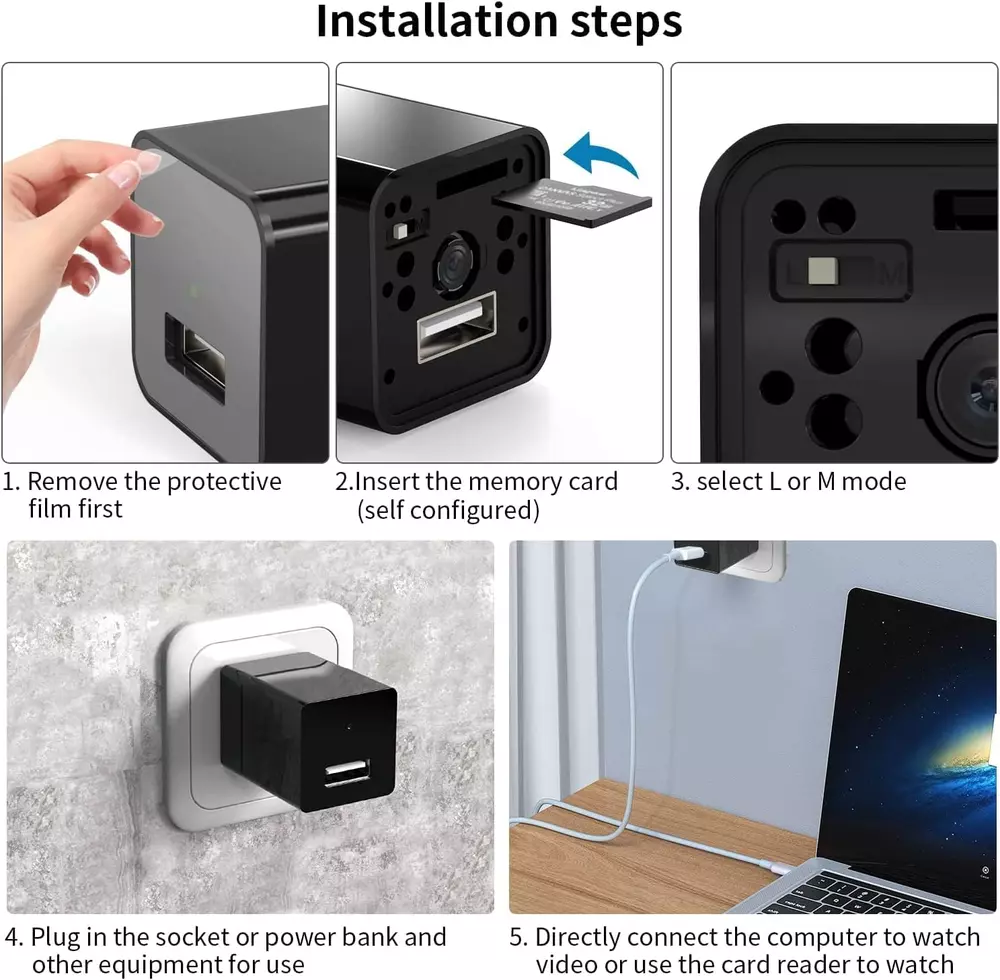 Store New Arrivals Add to Favorite View Feedback Contact No Audio Charger Camera - Video-Only 1080P Small Camera with Motion Detection - Covert Nanny Cam for Home Indoor Security - 32GB Micro SD Card Included Description Item model number CT32-1021 Number of Items 1 Power Source AC 110-240V or Powerbank Focus Type Auto Focus Country of Origin China Low light technology No Night Vision Controller Type socket or power bank Unit Count 1.0 Count Connectivity Protocol No need Internet, No need App, Supports SD Card up to 128GB( 32G SD Card is included) Wireless Communication Technology Supports up to 128GB (32G Micro SD Card is included) Video Capture Format Video-only Product Dimensions 1.59 x 1.23 x 1.23 inches Material Plastic Installation Type Plug it into a power bank or an outlet Model Name CT32-1021 Form Factor Compact Specific Uses For Product Indoor Security Included Components Usb Cable, Camera body, Card Reader, 32G SD Card Item dimensions L x W x H 1.59 x 1.23 x 1.23 inches Indoor/Outdoor Usage Indoor Video Capture Resolution 1080p Batteries Required? No Water Resistance Level Not Water Resistant Video encoding Video-Only Item Weight 3.52 ounces Connectivity Technology Supports up to 128GB (32G Micro SD Card is included) Effective Still Resolution 1080 Lines Per Inch Special Feature Portable, Motion Detection Effective Video Resolution 1080 Frame Rate 30 frames per second Mounting Type socket or power bank Color Black Compatible Devices Laptop Recommended Uses For Product Easy to use, plug it into a wall outlet to start recording. Discreet: This USB camera looks like a usual USB phone charger. It charges devices and records real 1080p Full HD with a 100° wide angle of view at the same time. Easy to Use: This camera come with a 32GB micro SD card. Choose the loop mode or motion detection mode, and plug it into an outlet or power bank and get irrefutable proofs. Motion Detection: Advanced motion detection technology activates when movement is detected, capturing footage automatically. Data Safety: No need Internet, No Need Wi-Fi, No Need App, data doesn't transfer to a third-party server. It has a special USB-USB cable for video access from it directly to PC or Mac. A valuable package: 1 x camera, 1 x 32G SD card, 1 x USB Data cable, 1 x manual, 1 x Card Reader, 1x Eject pin. NOTE: Please note that this device does not record audio. Hidden camera devices with audio recording are prohibited from being sold on Amazon due to different privacy laws in some states. Product Description ABOUT US We offer the best prices around on high quality products. Our E-store includes media such as books, movies, music and games while offering electronics, toys, sporting apparel, clothing, tools, general home, garden items and more. SHIPPING We are always working hard to ensure your package arrives as soon as possible. Please understand that some factors like weather, high postal traffic, and the performance of shipping companies are outside of our control. We offer free shipping to the lower 48 states and ship within 2 business days of payment, usually sooner. We do not accept P.O. Boxes. Please provide a physical address. For shipping outside of the continental USA, we only use eBay's Global Shipping Program.The item is shipped to KY and then sent to the rest of the world. International customers are responsible for all duties and taxes. Continue to check out in order to calculate costs for shipping the item to your country. Messages regarding eBay's Global Shipping Program MUST be directed at eBay EXCLUSIVELY. RETURNS We offer a 30-Day Return Policy on items which you are not completely satisfied with. You have the option for a full-refund or an exchange of the item. No returns are available on items shipped outside of the USA. PAYMENT We accept PayPal. CONTACT US This page content is yet to come Please ad us to your favorite seller and visit again later Thank You CUSTOMER SATISFACTION We try our very best to make sure every customer is completely satisfied. If there's a problem, message us! We're happy to help. WE ACCEPT Copyright © 2021 AutoDS. | All Rights Reserved