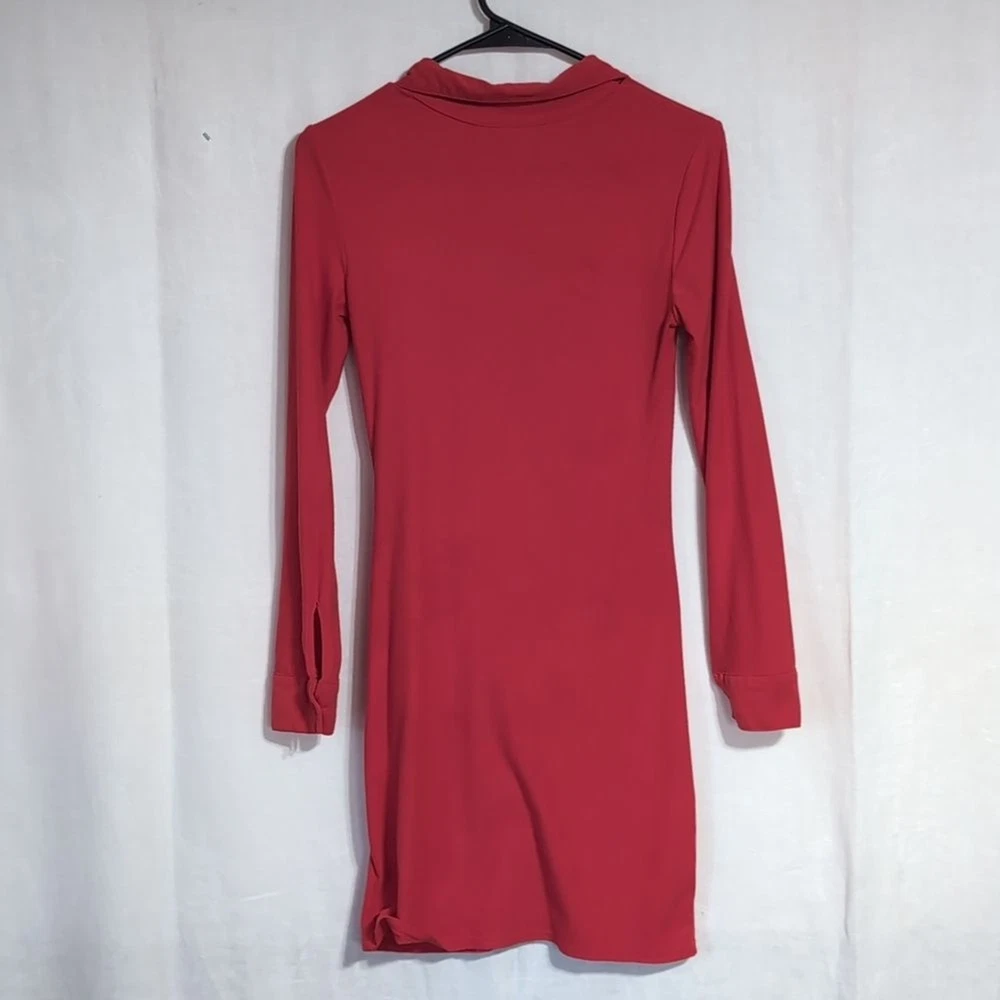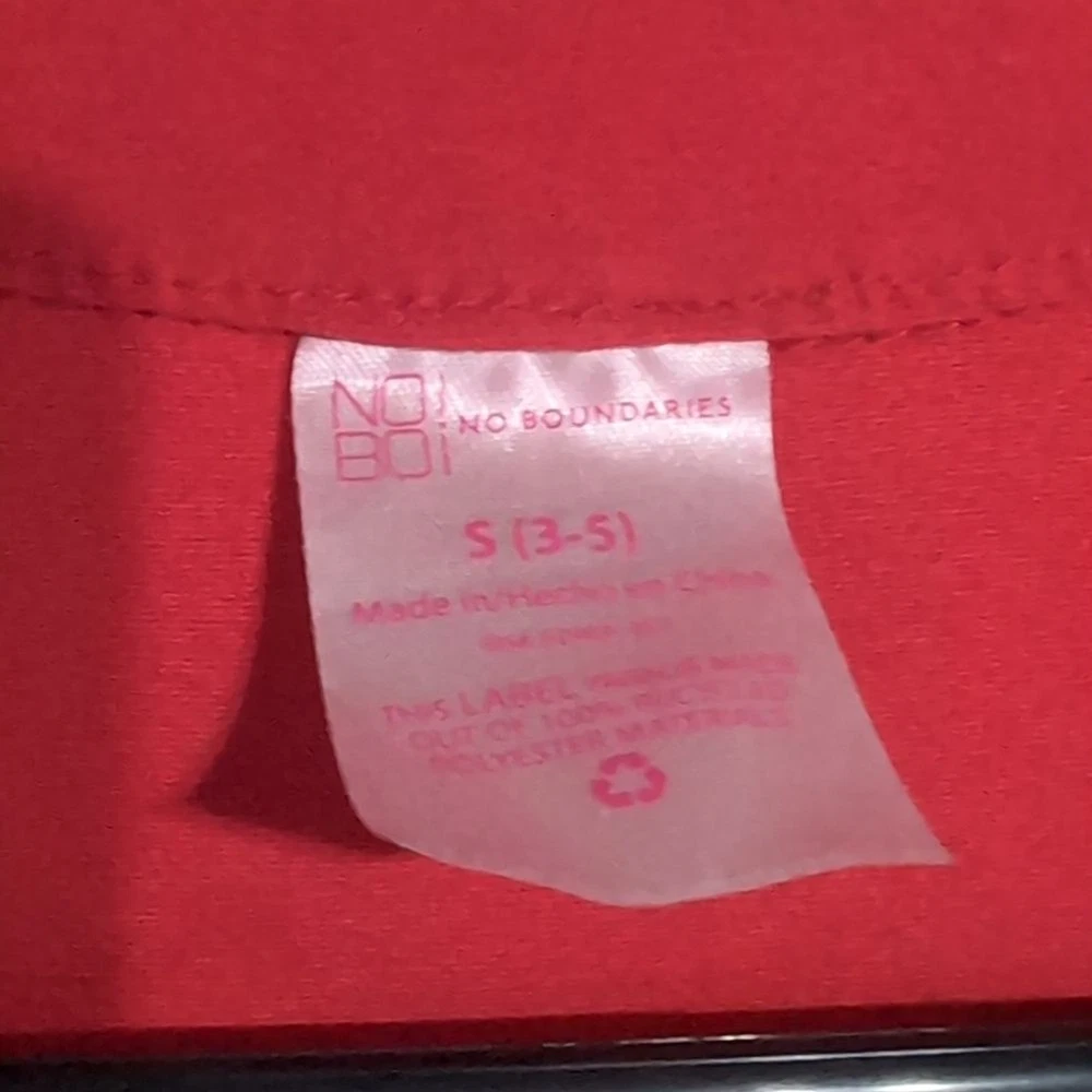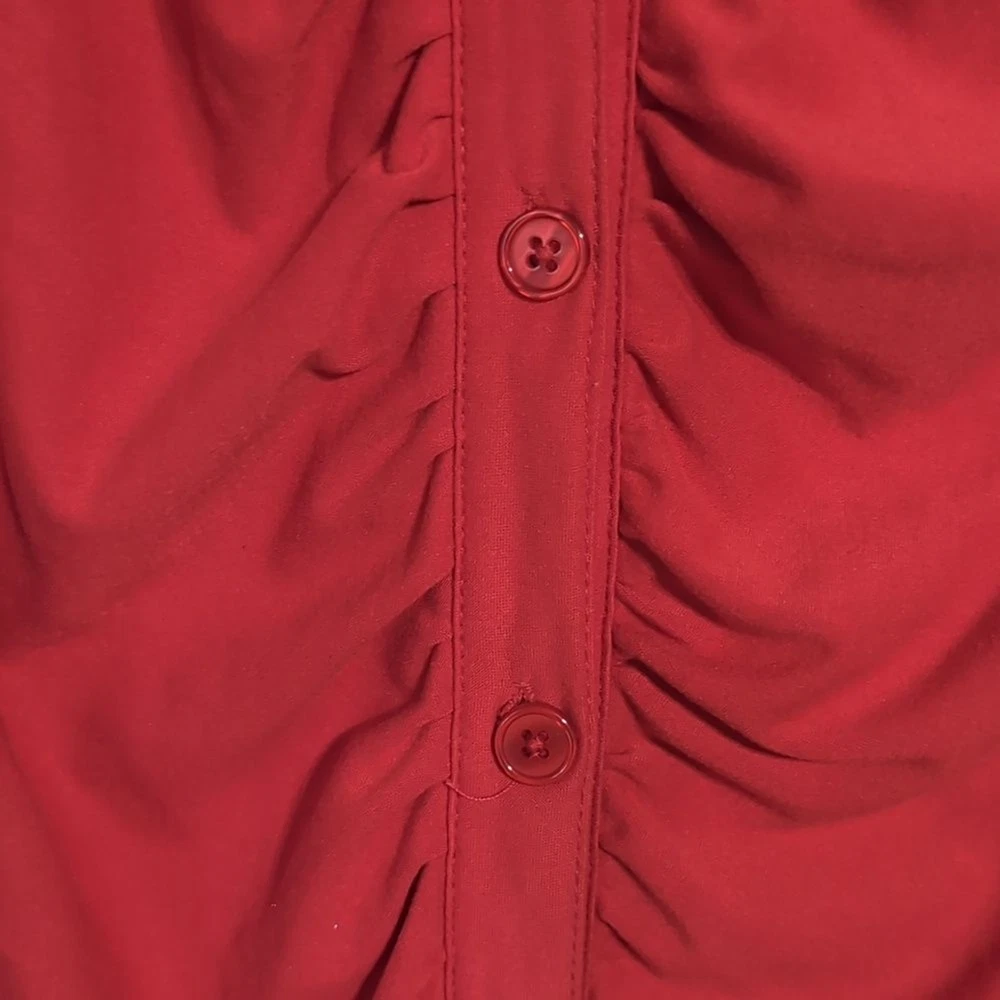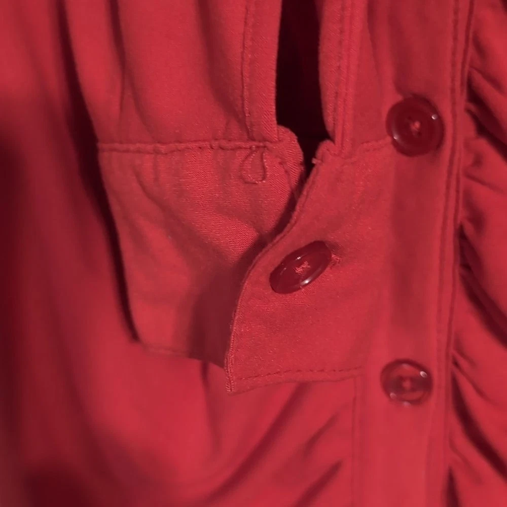 No Boundaries size small polyester blend cherry red color Bodycon fit button front closure collared long sleeve chic look moderate stretch excellent used condition measurements pit to pit 15 length 34