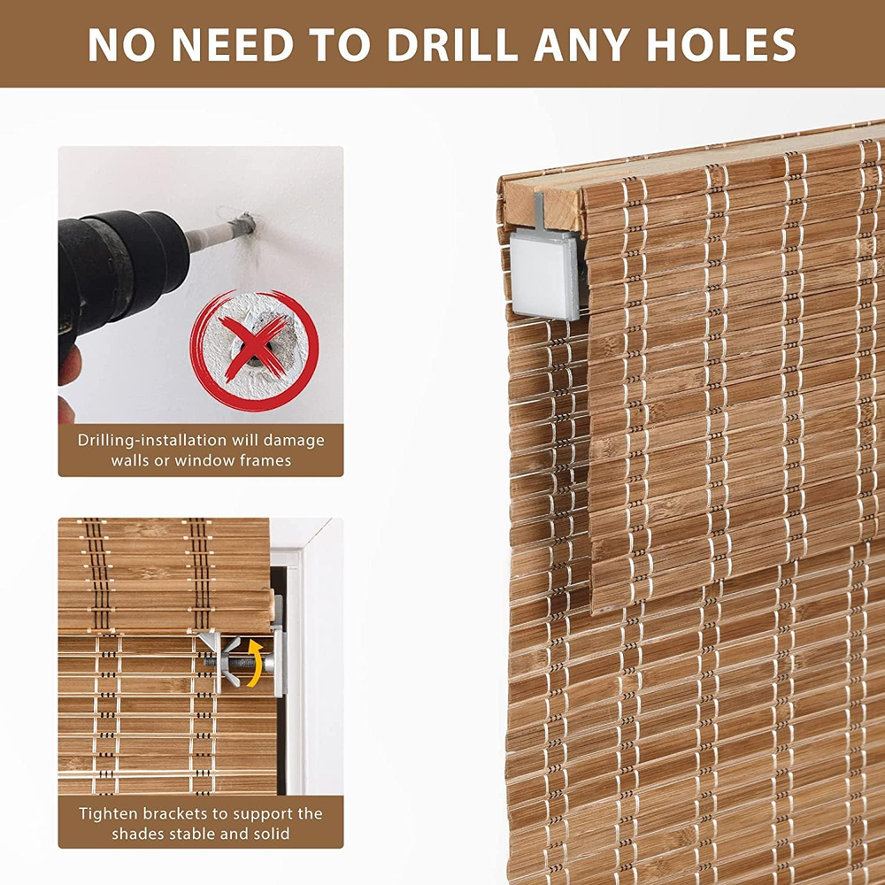 $ 50.69Cordless Bamboo Roman Shades – No Tools No Drill Light Filtering Window Treatment