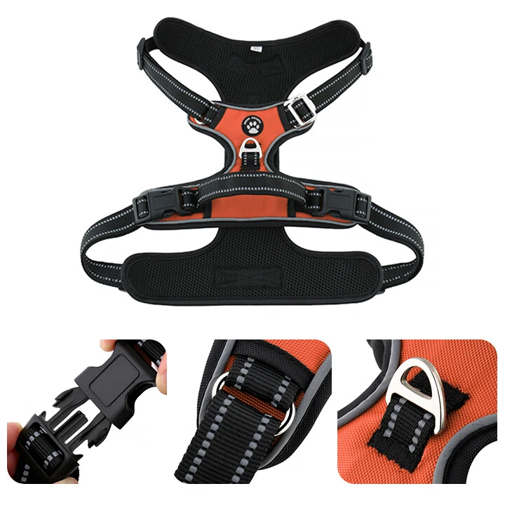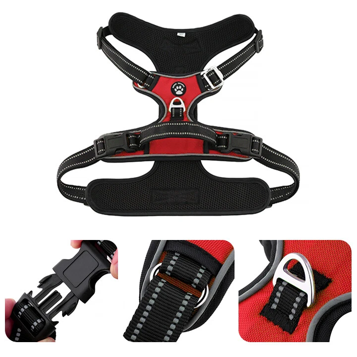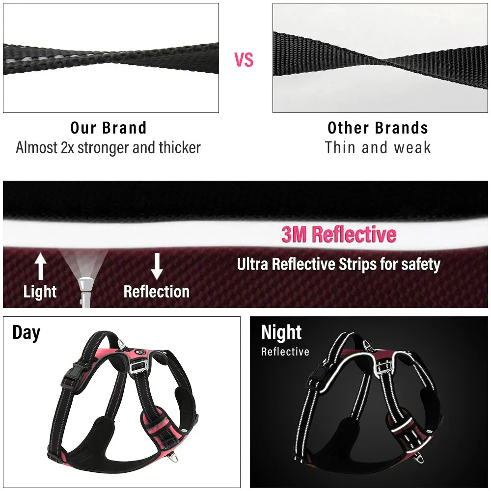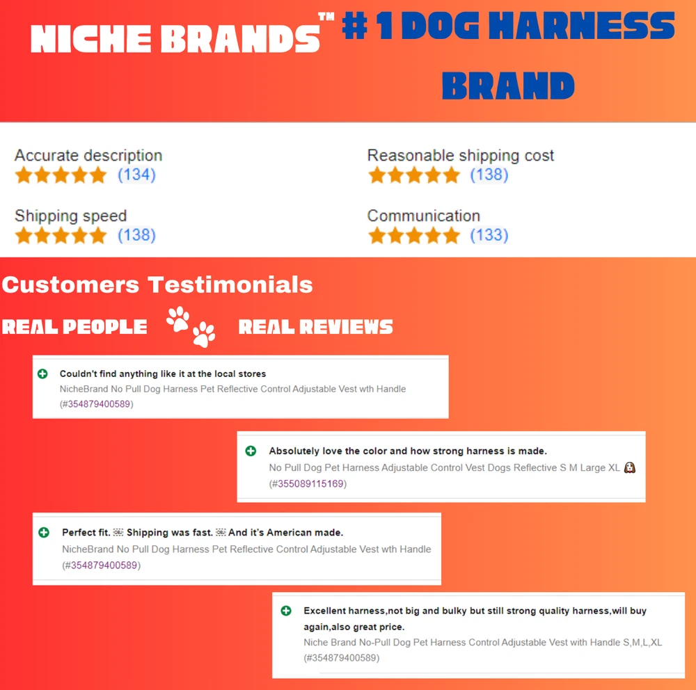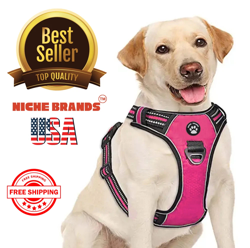 Niche Brands™ No-pull No-Choke dog harness is the ultimate solution for dog owners who want to keep their furry friends safe and comfortable while walking. Made with high-quality materials and featuring a unique design , this harness distributes pressure evenly across the chest and back to prevent choking and pulling on your dog's neck. The padded chest panel and adjustable sizing ensure a secure and comfortable fit for dogs of all sizes, while the reflective strips keep your dog visible in low light conditions. The easy-to-use buckle and leash attachment make it a breeze to put on and take off, even for the most active dogs. Adjustable Weight Pulling Harness Dog Harnesses Best New Year Gift you could give to your Dog Holiday SALE - 5% Leash needs to be purchased separately. 🐶 [ NO PULL - CHOKE RESISTANT ] - NICHE BRANDS Designer non-pull adjustable dog harness with handle features RUSTPROOF Zinc Alloy dual metal D-rings, on both sides of the dog vest. The front D-Ring helps redirect your dog's forward motion, and the back ring is perfect for a casual dog walk, jogging, hiking, training. The four Adjustable straps fit various dogs with different body shapes. With 2 easy buckles on belly straps and 1 more lockable quick release buckle on the neckline, you don’t need to slip over the dog’s head to adjust the straps all the time. 🐶 [ Pet-friendly REFLECTIVE Material ] - Our durable dog vest is made of 1200D Oxford Fabric with sturdy stitching, suitable for long-time use. Breathable padded mesh design keeps air circulation around your dog’s body and protects your dog’s skin during outdoor activities. Reflective/Lighted straps guarantee you a safe and wonderful late-night walk 🐶 [ FIT for All ] - The harness comes in different sizes and fits SMALL/MEDIUM/LARGE/XL size fur friends. Refer the sizing guide for neck and chest girth and get the purrfect size for your furry friend. Large Dog Harness fits even the fluffiest dog 🐶 [ EASE TO USE AND SECURE LOCKING ] - The dog harness with simple design, Front clips and quick snap buckles which make it easy to put on and take off. Locking feature on both snaps makes it more secure, 100% ensures NO accidental detachment. 4 easy size adjustors at neck and chest for easy adjusting to fit your dog perfectly, even with some room of growth. Perfect training vest for daily walking, running, hiking, training, hunting, outdoor adventure and more! 🐶 [ EASY CLEANING ] - Harness material is dust resistant and Machine washable and hence easy for daily use. All metal accessories are rust-proof and provides long term Durability. 🐶 [ DURABILITY ] - Made of durable nylon webbing, enhanced high density nylon oxford, breathable mesh lining and strong accessories including buckle, size adjustors making it the best harness for dog. 🙏 Customer Service - Our customers’ amazing shopping experience is always our Priority. If you have any problems while using our products, please feel free to let us know. Our customer service will effectively solve your problem in 24 hours. Niche Brands pet supplies is a company that is passionate about providing high-quality, unique and innovative products for pets. Our mission is to create a brand that pet owners can trust and rely on for their pet's needs. We understand that every pet is different and has unique needs, which is why we offer a wide range of products that cater to different lifestyles and preferences. Product Description Package includes: 1 x No Pull Dog Pet Harness Adjustable Control Vest Dogs Reflective S M Large XL Shipping Information: Free shipping - Your item Ships Same Day to 1 Business Day
